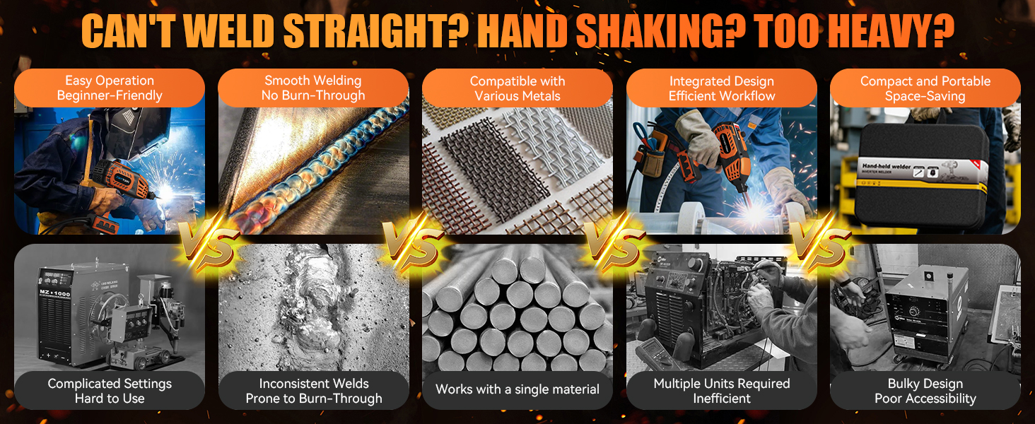 【متوافقة مع أحجام القضبان المتعددة وأنواع المعادن】يدعم جهاز اللحام الكهربائي هذا أقطابًا كهربائية من 3/32 إلى 1/8 بوصة (2.5-3.2 مم) ويتضمن 20 قضيب لحام. آلة لحام الليزر المحمولة المصنوعة من الفولاذ المقاوم للصدأ والفولاذ الكربوني والحديد والمعادن الشائعة الأخرى بسهولة، مما يجعلها مساعدًا جيدًا لمشاريع السيارات والتصنيع الآلي والمبارزة والأجهزة. يضمن التشغيل القوسي الساخن إشعالًا سلسًا ولحامات أكثر نظافة، بينما يوفر المقبض سهل التغيير الوقت ويعزز الكفاءة