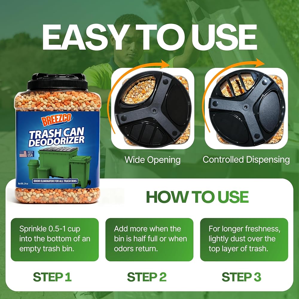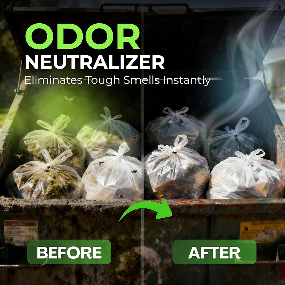 - معادل قوي للرائحة - يزيل على الفور روائح القمامة القوية من صناديق القمامة وصناديق القمامة وصناديق القمامة الخارجية والداخلية.