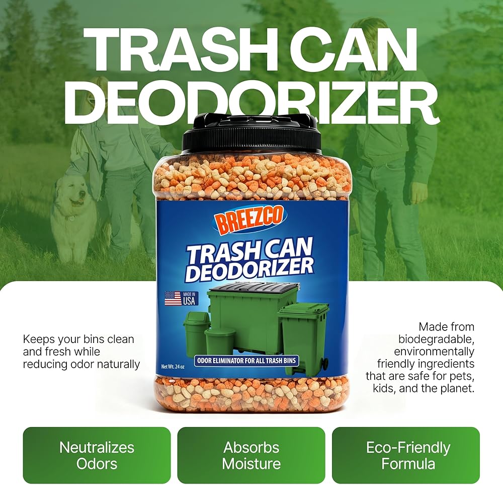 مزيل الروائح الكريهة من سلة المهملات 24 أونصة - مزيل الروائح الكريهة وامتصاص سلة المهملات في الهواء الطلق، قابل للتحلل البيولوجي، يحيد روائح القمامة ويمتص السوائل