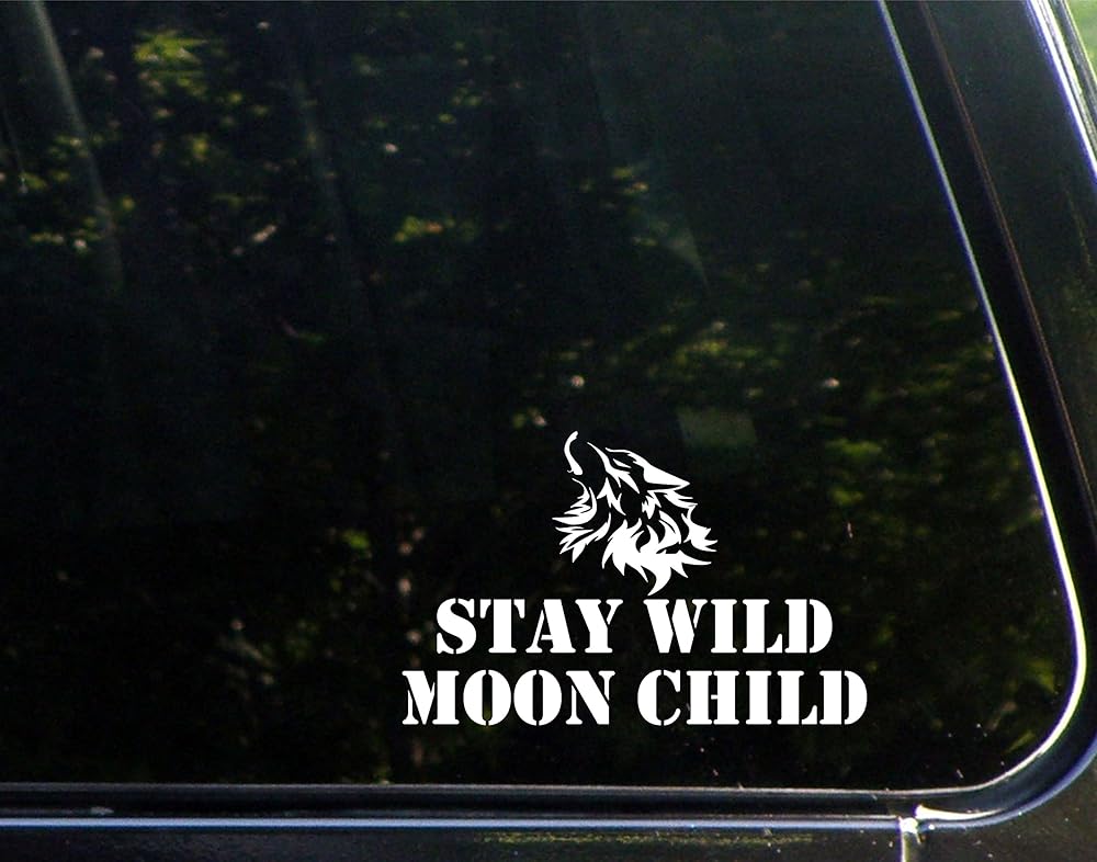 Stay Wild Moon Child (Wolf) - 6 بوصة × 3-3/4 بوصة - ملصق ممتص للصدمات من الفينيل للنوافذ والسيارات والشاحنات وأجهزة الكمبيوتر المحمولة، إلخ.