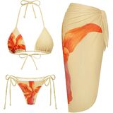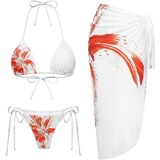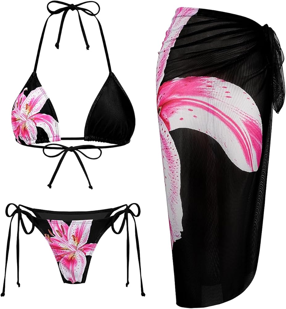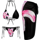 طقم بيكيني نسائي مكون من 3 قطع بطبعة زهور وربطة جانبية وربطة عنق مثلثة مع تنورة طويلة تغطي الشبكة in Kuwait