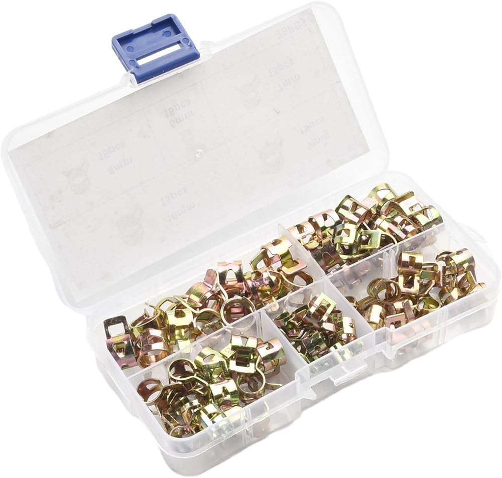 - Adjustable hose clamps are housed in a clear plastic box that helps you sort so you don't get lost or confused. The set is enough to meet your different needs