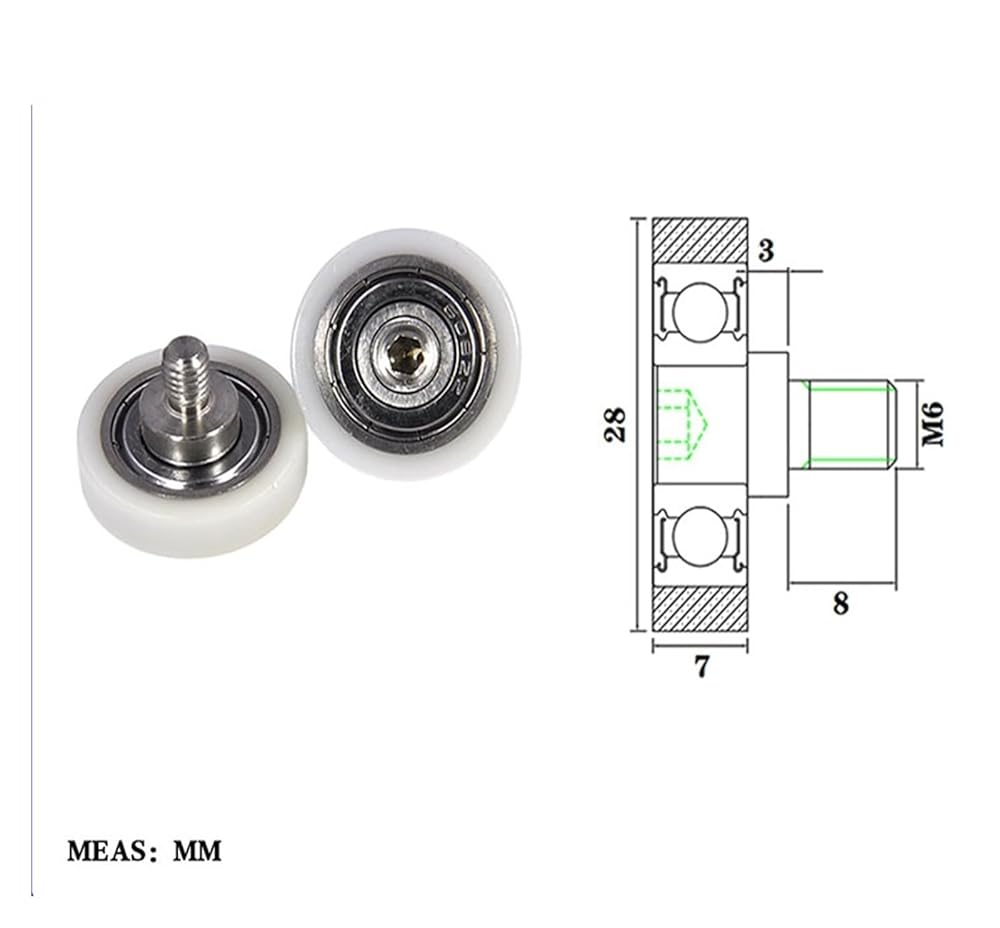- Externally threaded POM plastic bearing BS60828-7C3L8M6 high wear-resistant nylon threaded guide wheel