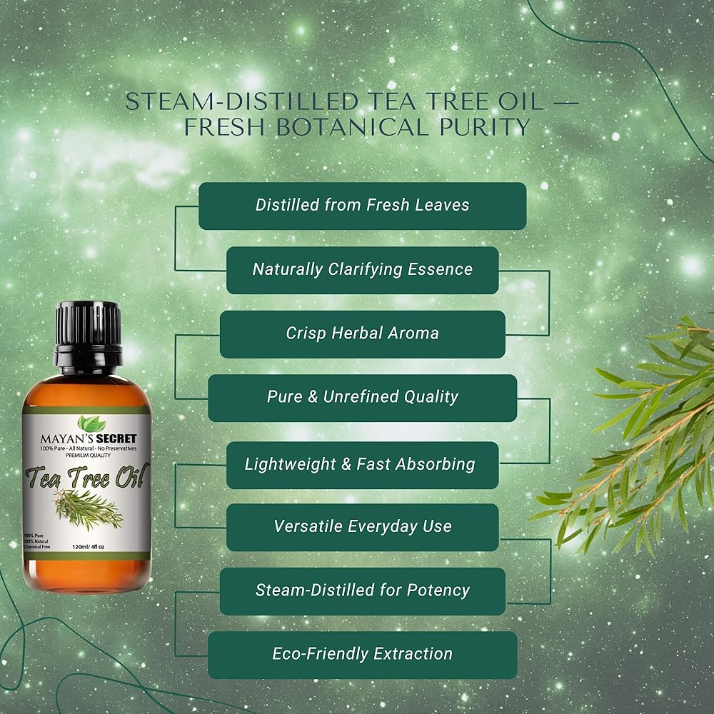 نقي وطبيعي 100% - مصدره أوراق Melaleuca Alternifolia الأسترالية الممتازة، مقطر بالبخار لضمان النقاء والحفاظ على الرائحة الطبيعية والفعالية.