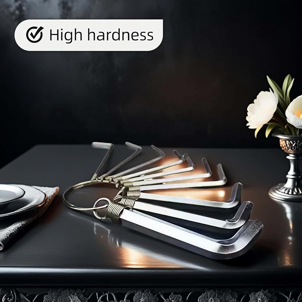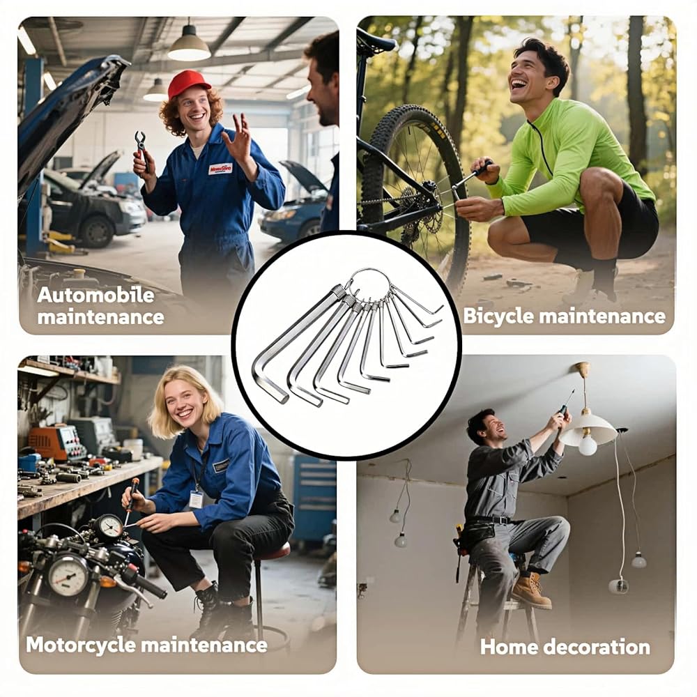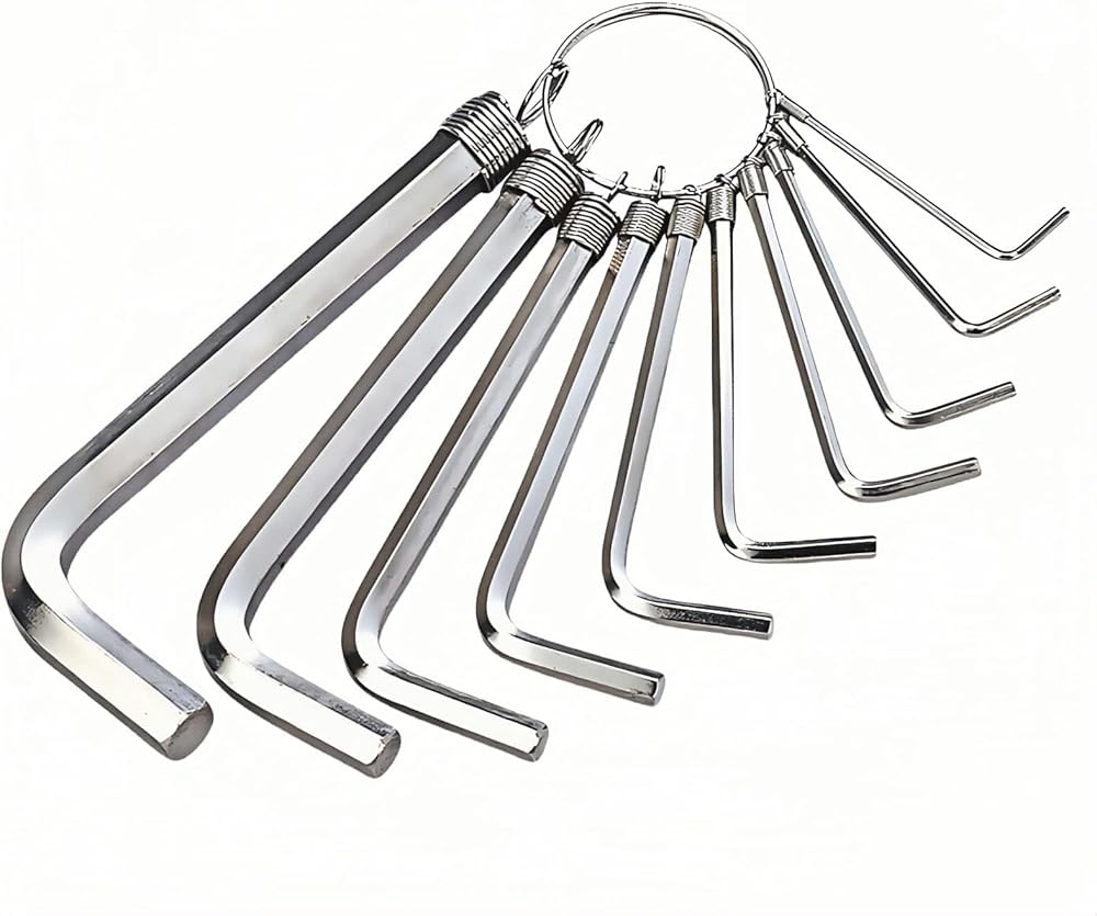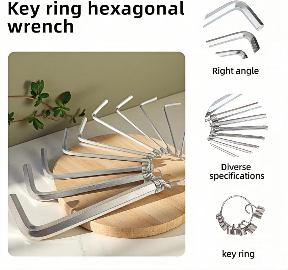 • ✅ NEVER LOSE A KEY AGAIN - Smart Keyring Design All 10 hex keys securely snap onto the rust-proof steel ring, preventing loss in your toolbox or pocket. No more searching for missing tools!