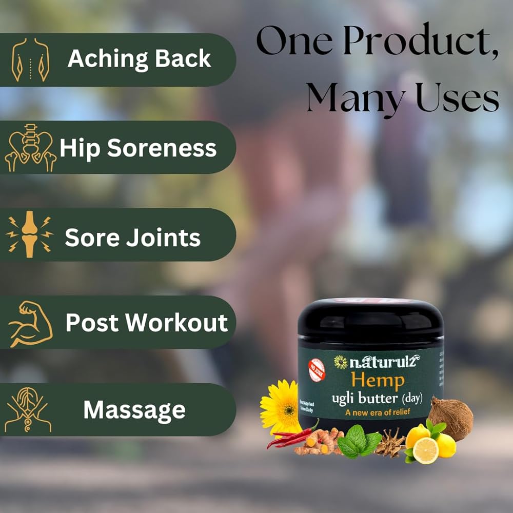 حزمة Naturulz وحفظها!!! - 3 عناصر من زبدة Ugli للنهار والليل والطاقة. تركيبات نباتية قوية مصنوعة من مستخلص القنب المزروع في ولاية أوريغون، مواد موضعية طبيعية بالكامل