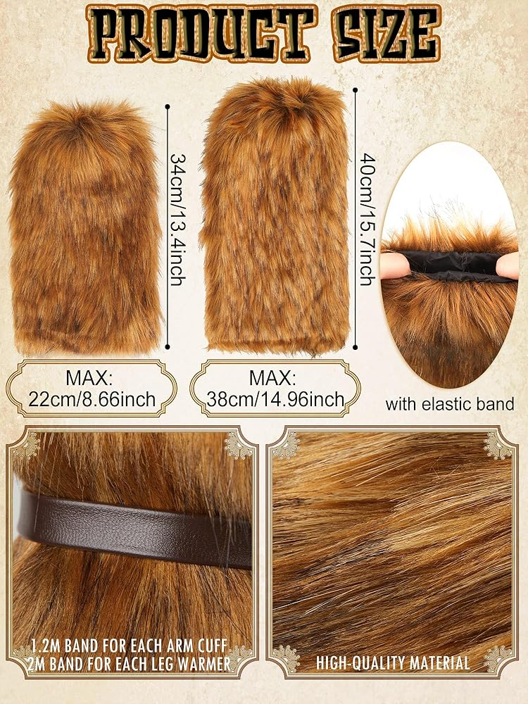 • مجموعة أزياء الفايكنج الكاملة: حوّل نفسك إلى جنية مع مجموعة الأزياء الكاملة هذه، فهي تتضمن زوجًا واحدًا من تدفئة الساق المصنوعة من الفرو الصناعي، وزوجًا واحدًا من أساور المعصم المصنوعة من الفرو الصناعي، وزوجًا واحدًا من أقراط الفايكنج، وقطعتين من سلاسل الرأس، و3 قطع من مشابك شعر من الريش، تحتوي هذه الحزمة على الملحقات التي تحتاجها للارتقاء بلعبتك التنكرية إلى المستوى التالي