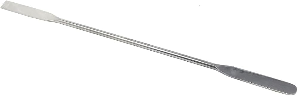 Designed to handle gel, oils, pastes, powder, or granulated materials. Features a long narrow long handle for retrieving materials from deeper bottles, beakers, crucibles, and jars.