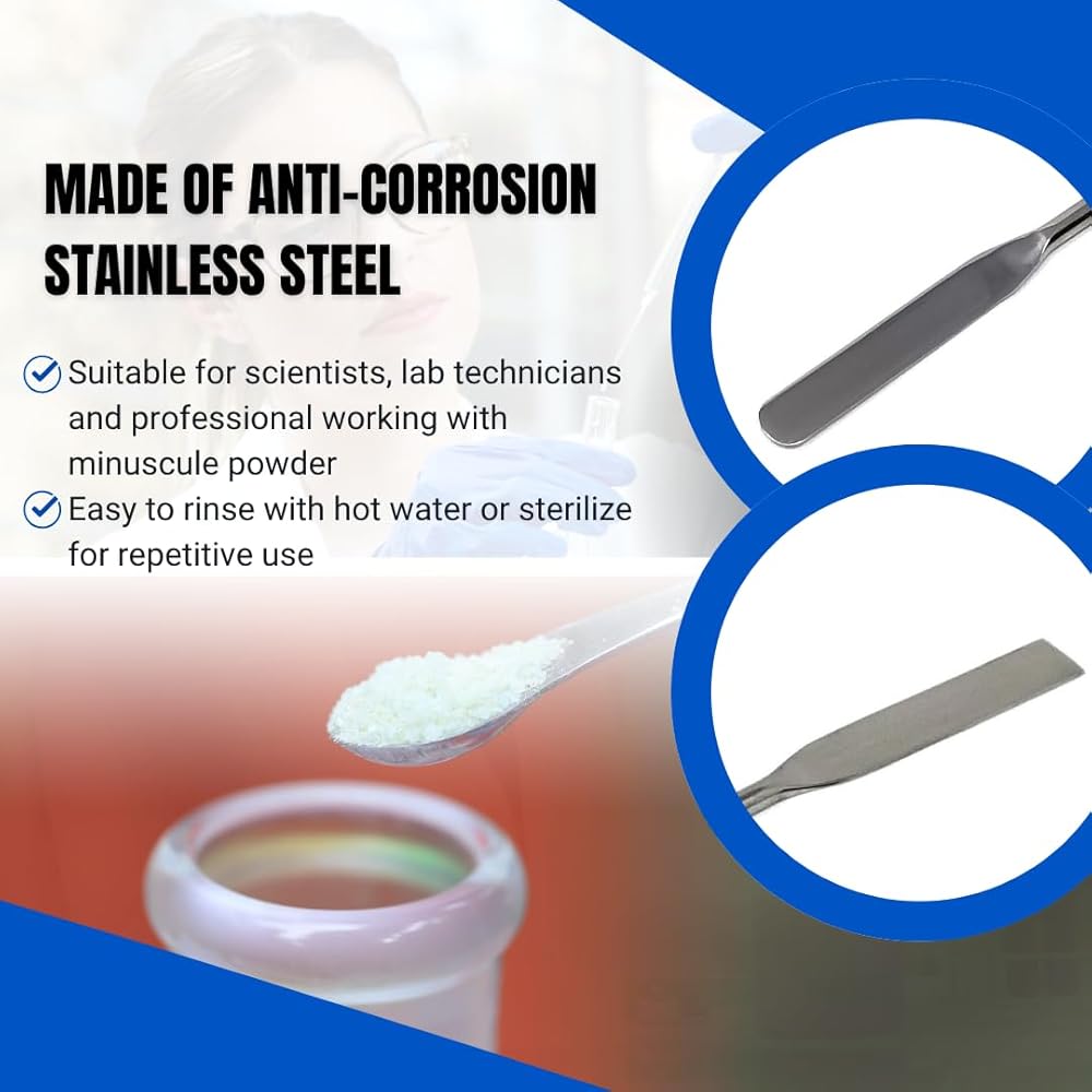 Ideal for working with minuscule amounts of chemicals and powder. Suitable for breaking up, scraping off, picking up and transferring chemical solids, granules, oils, pastes or other compounds.