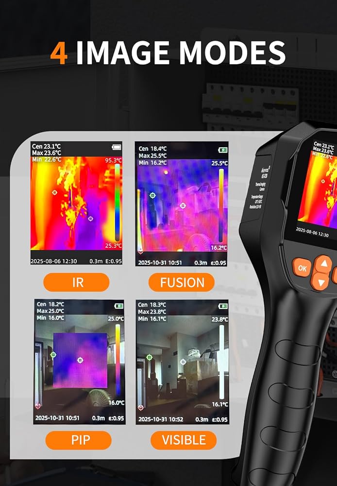 【سهولة الاستخدام】(1) يساعدك مؤشر الليزر المتكامل على تحديد موقع الكائن الذي تم فحصه في ظروف الإضاءة المنخفضة أو الأماكن الضيقة. (2) 5 لوحات ألوان محددة مسبقًا تناسب سيناريوهات ومتطلبات الفحص المتنوعة بمرونة. (3) تتيح شاشة USB Cast عرضًا فوريًا للعرض على أجهزة الكمبيوتر لإجراء تحليل تعاوني. (4) نطاق الفحص يصل إلى -4 درجة فهرنهايت إلى 1022 درجة فهرنهايت، ويمكنك أيضًا ضبطه لتسليط الضوء على نطاق معين تريد التركيز عليه.