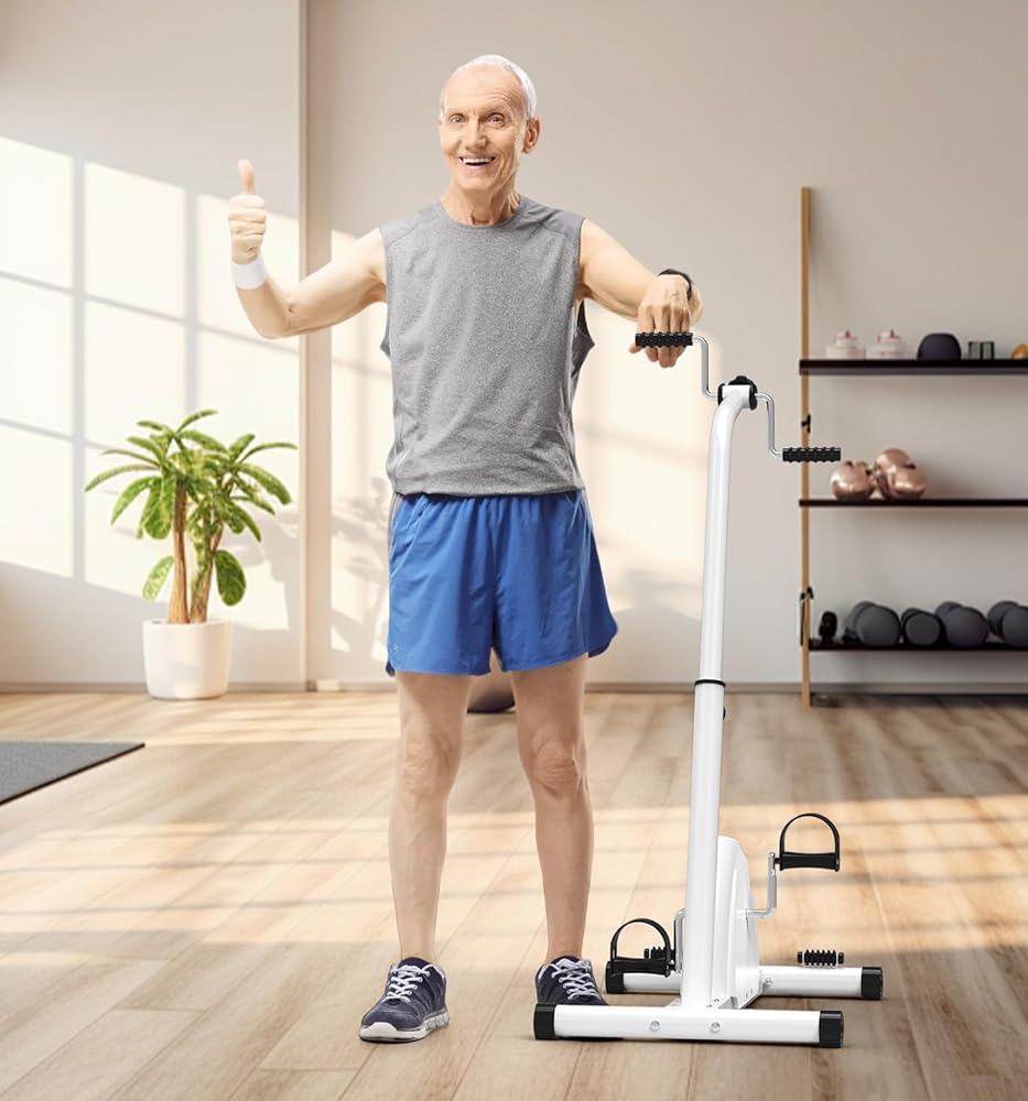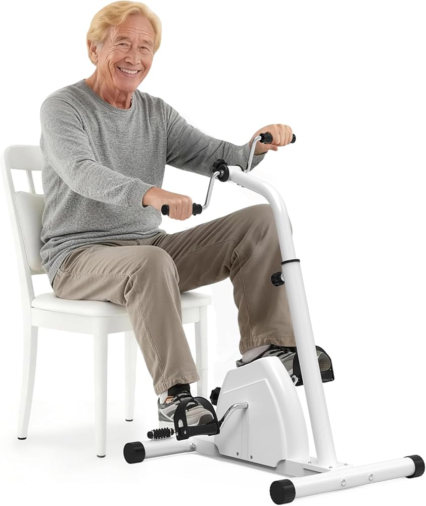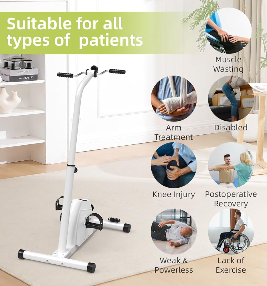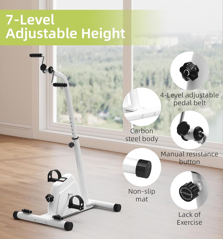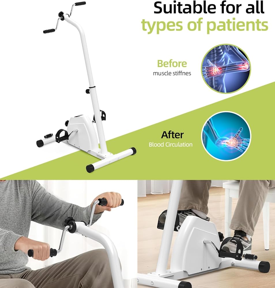 Product Description Stay Active and Recover Faster with the Ultimate Portable Pedal Exerciser Regaining mobility and staying active shouldn't be difficult. Whether you are recovering from a recent surgery, dealing with limited mobility, or simply want to stay fit while watching TV, our pedal exerciser bike is the perfect solution for you. It functions as a hand arm leg and knee peddler, allowing you to get a full-body workout from the comfort of your favorite chair. Designed for Recovery and Wellness If you are looking for reliable elderly workout equipment or need a gentle way to recover after a procedure, this machine is for you. It is widely recommended as exercise equipment for obese individuals because it eliminates the impact on knees and ankles while still providing excellent cardiovascular and muscular benefits. As a dedicated knee exercise machine, it helps stimulate blood flow and maintain flexibility in the joint, which is crucial for long-term health. 2-in-1 Functionality As a Leg Exerciser: Place it on the floor to work your calves, thighs, and hips. The low-impact motion is perfect for a sit down bike experience without the bulk of a traditional machine. As an Arm Exerciser: Place it on a tabletop to use as an arm bike exercise machine table top unit. It works perfectly as an upper body ergometer, helping to improve shoulder mobility and arm strength. This is a fantastic hand bike exerciser for therapy for stroke patients or those with upper body injuries. Easy to Use, Easy to Store Unlike bulky exercise machines for seniors, this compact unit slides easily under a bed or sofa when not in use. The non-slip base ensures the machine stays firmly in place during intense sessions, and the pedal straps accommodate various foot and hand sizes, ensuring a safe and comfortable workout. Start your journey towards better health today. Add this essential piece of knee exercise equipment to your cart and take the first step toward pain-free movement. Product Dimensions: 43.31*25.59*19.69 in/110*65*50cm Material: Durable ABS Plastic & Steel Display: LCD
