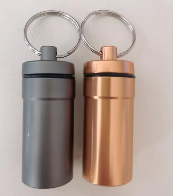 - Package includes: 2 x Aluminum Pill Box with Keychain + 2pcs extra O-rings
