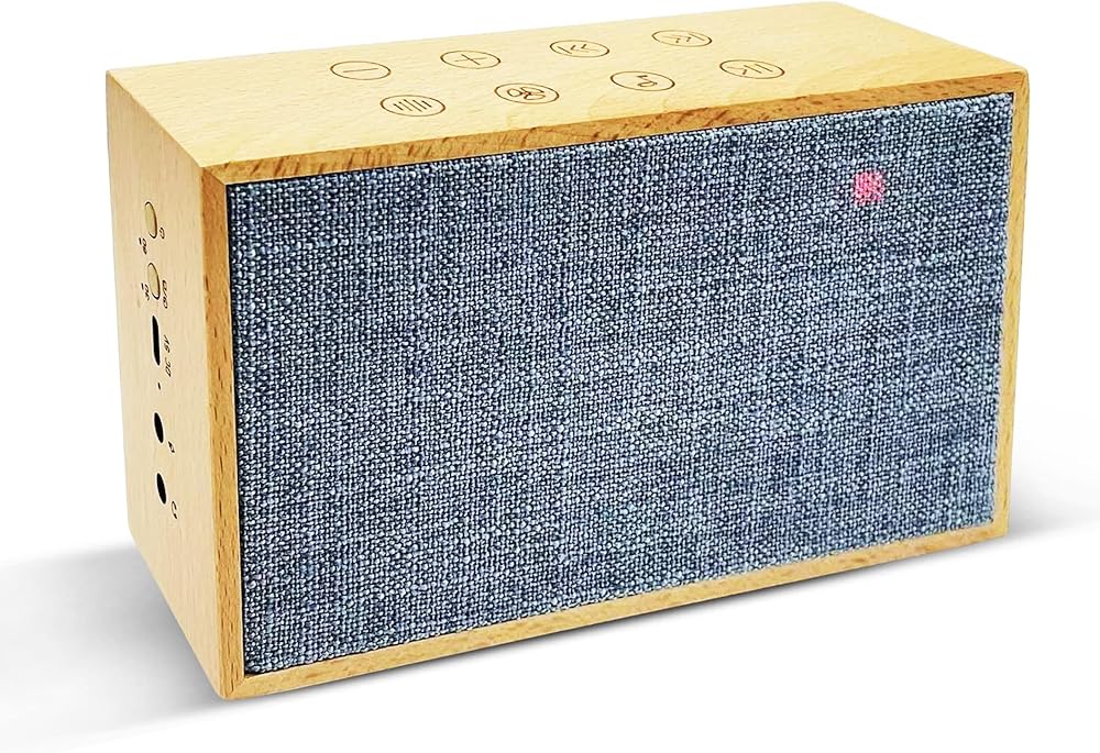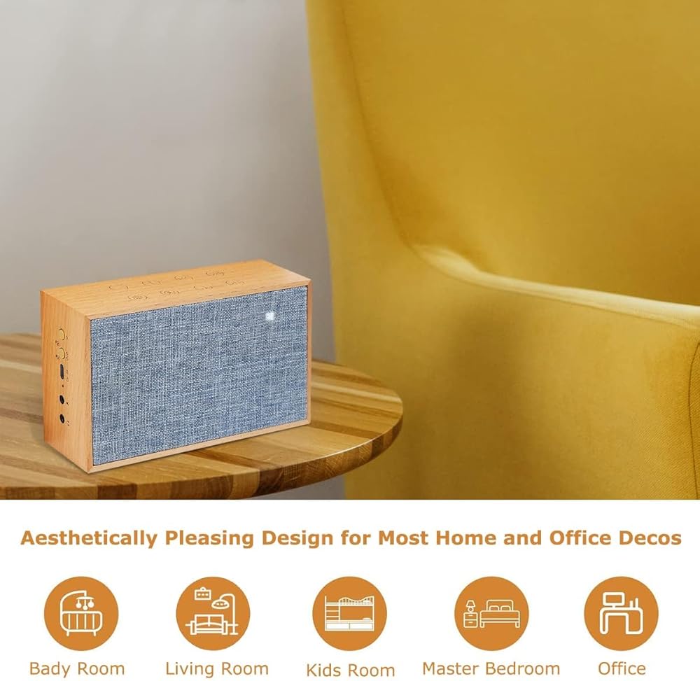 جهاز صوت النوم الخشبي الأبيض من ليكسنيك مع مكبرات صوت ستيريو مزدوجة، بطارية قابلة لإعادة الشحن 24 ساعة، 37 ضوضاء بيضاء فريدة غير متكررة وأصوات طبيعية للبالغين