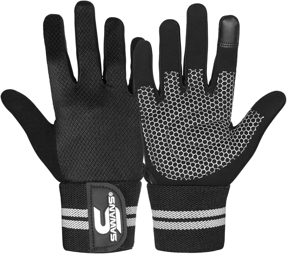 👷♂️FLEXIBLE FIT - Touchscreen full finger gloves with extended wrist support non slip weight lifting palm padding fabric and breathable back for fishing or driving and sturdy for home gym workout with cushioning against pressure of machine handles, cycling handlebars or hiking gadgets.