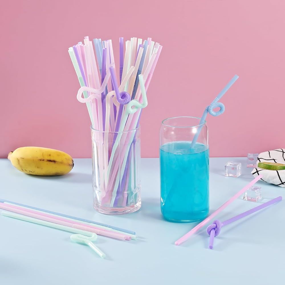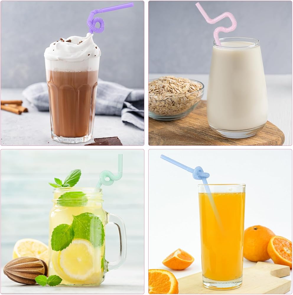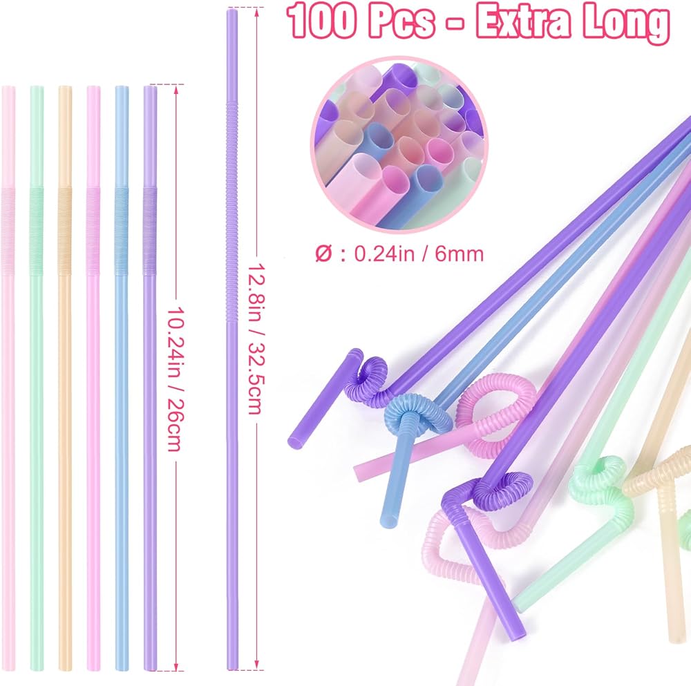[100 Pcs] Disposable Plastic Drinking Bendy Straws - 10.24" Long and 0.24" Diameter Colorful Cute Flexible Long Straws for Juice,Coffee,Milk,Cocktail