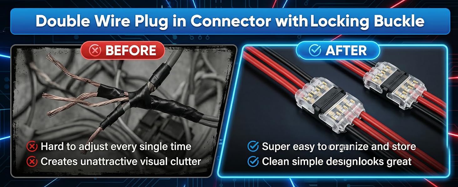 بدون تقشير، تركيب سريع - يتيح لك تصميم وصلة الأسلاك السريعة بدون لحام توصيل الأسلاك دون تقشير أو قطع أو لحام أو تجعيد. تركيب نظيف وخفيف للأدوات لإجراء إصلاحات أسرع وإنشاءات جديدة.