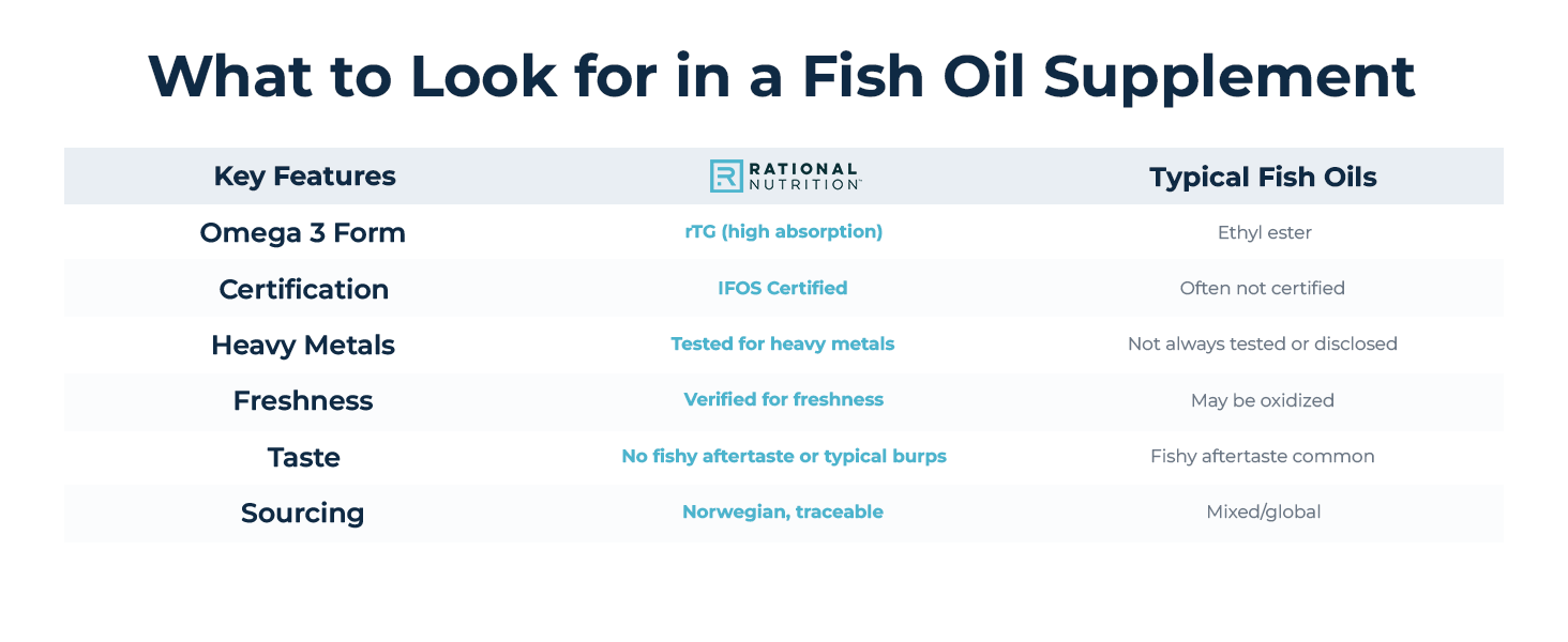 مدعم بـ EPAX، المعيار الذهبي في مكونات زيت السمك - EPAX هو المورد وراء تركيبات أوميغا 3 الصيدلانية الأكثر ثقة في العالم. نحن نستخدم نموذج الدهون الثلاثية المعاد تقديره (rTG). نفس الشكل الطبيعي الموجود في الأسماك الكاملة، مركز لتحقيق أقصى قدر من الفعالية. تستخدم معظم زيوت السمك المتوفرة في السوق الشامل إستر إيثيل أرخص بدلاً من ذلك.