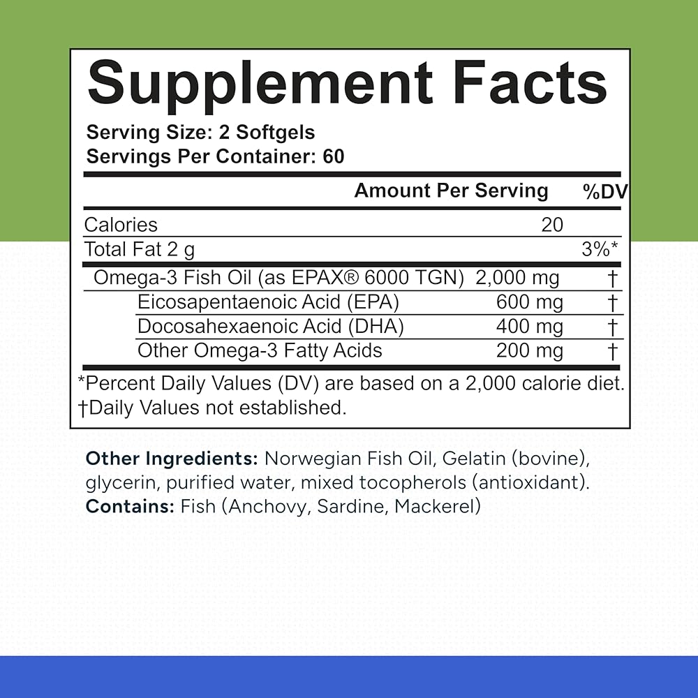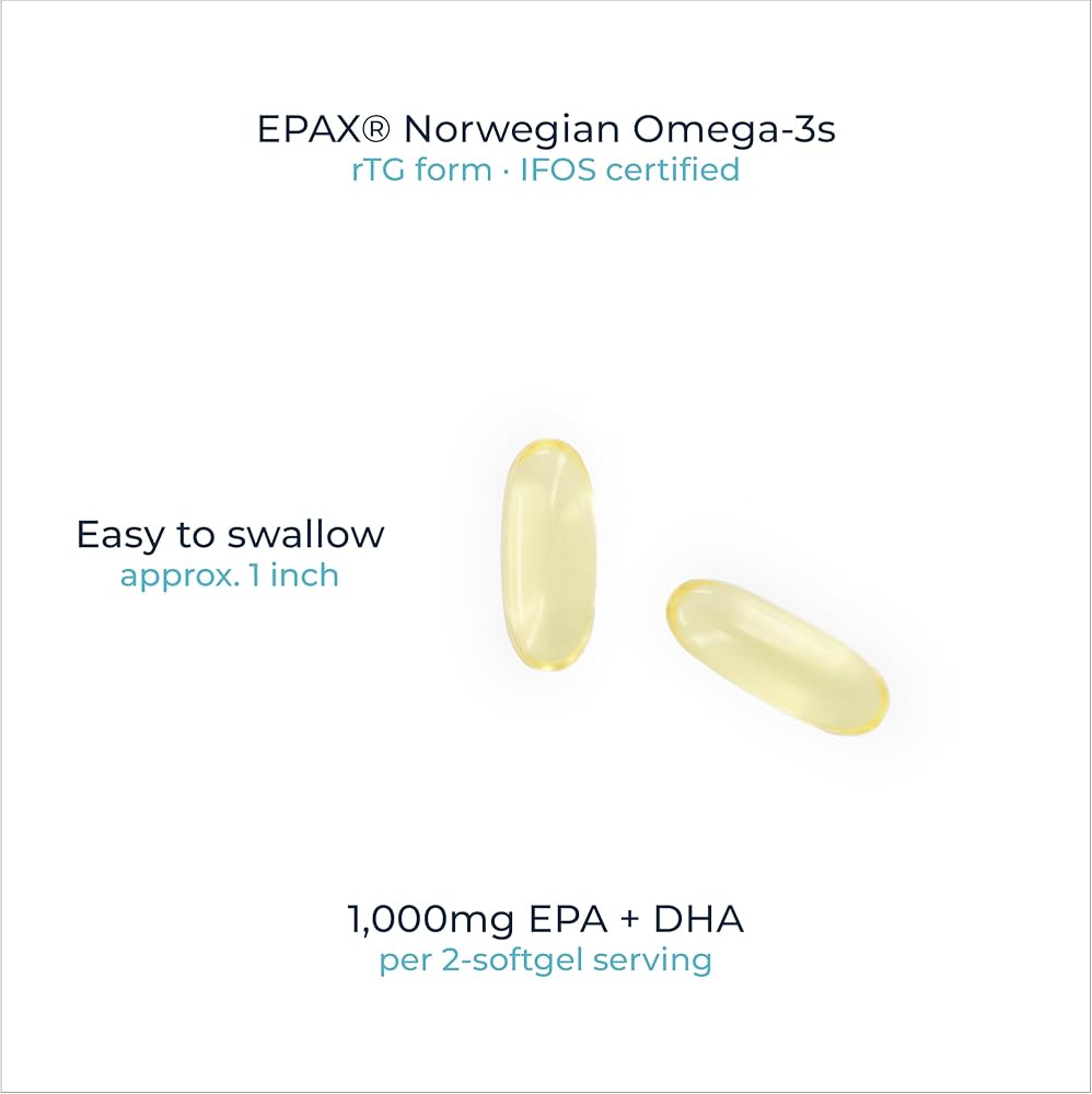 زيت السمك EPAX® النرويجي أوميغا 3 - 1000 ملجم EPA وDHA، نموذج rTG لامتصاص فائق، معتمد من IFOS، لا يوجد تجشؤ مريب، تم اختباره من قبل طرف ثالث، دعم دماغ القلب والمفاصل - 120 كبسولة هلامية