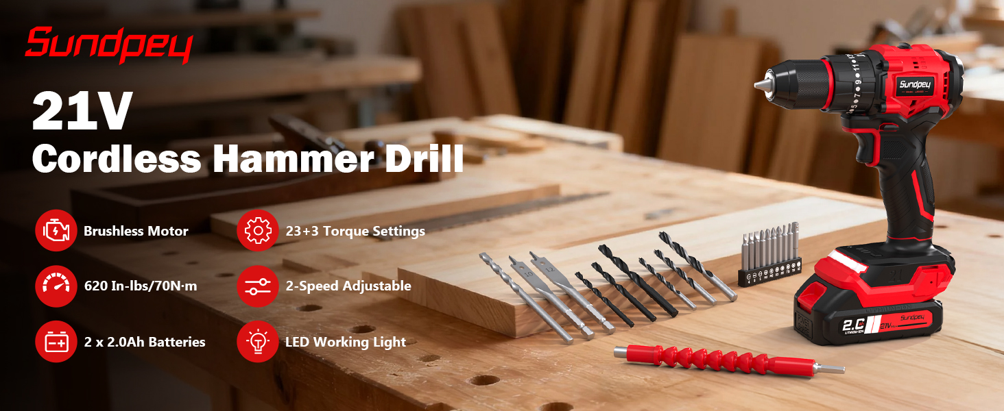 • دعم الخدمة الودية: يوفر المثقاب المطرقي اللاسلكي Sundpey 21v خدمة المنتج لمدة 3 سنوات! إذا كانت لديك أي أسئلة حول مجموعة المثقاب الكهربائي اللاسلكي، فيرجى العثور علينا، وسنقدم لك خدمة جيدة لحل مشكلتك في المرة الأولى