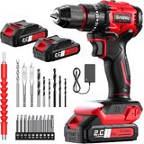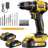 مجموعة مثقاب كهربائي لاسلكي من Sundpey - 620 رطلًا 23+3 مثقاب كهربائي بدون فرشاة مع بطارية 2 × 2.0 أمبير وإضاءة LED وظرف معدني 3/8 بوصة وشاحن سريع - مفك براغي كهربائي للمنزل والأعمال الخشبية للرجال والنساء in Kuwait