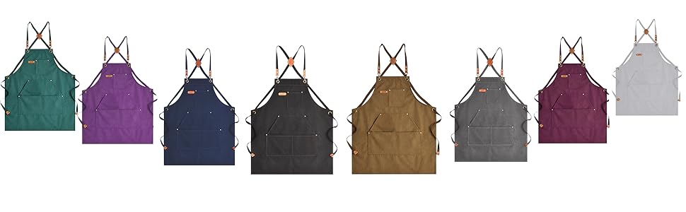 Apron handcrafted from 100% cotton canvas, no smell. Exquisite hardware buckle. Pocket corners are reinforced with metal rivets.