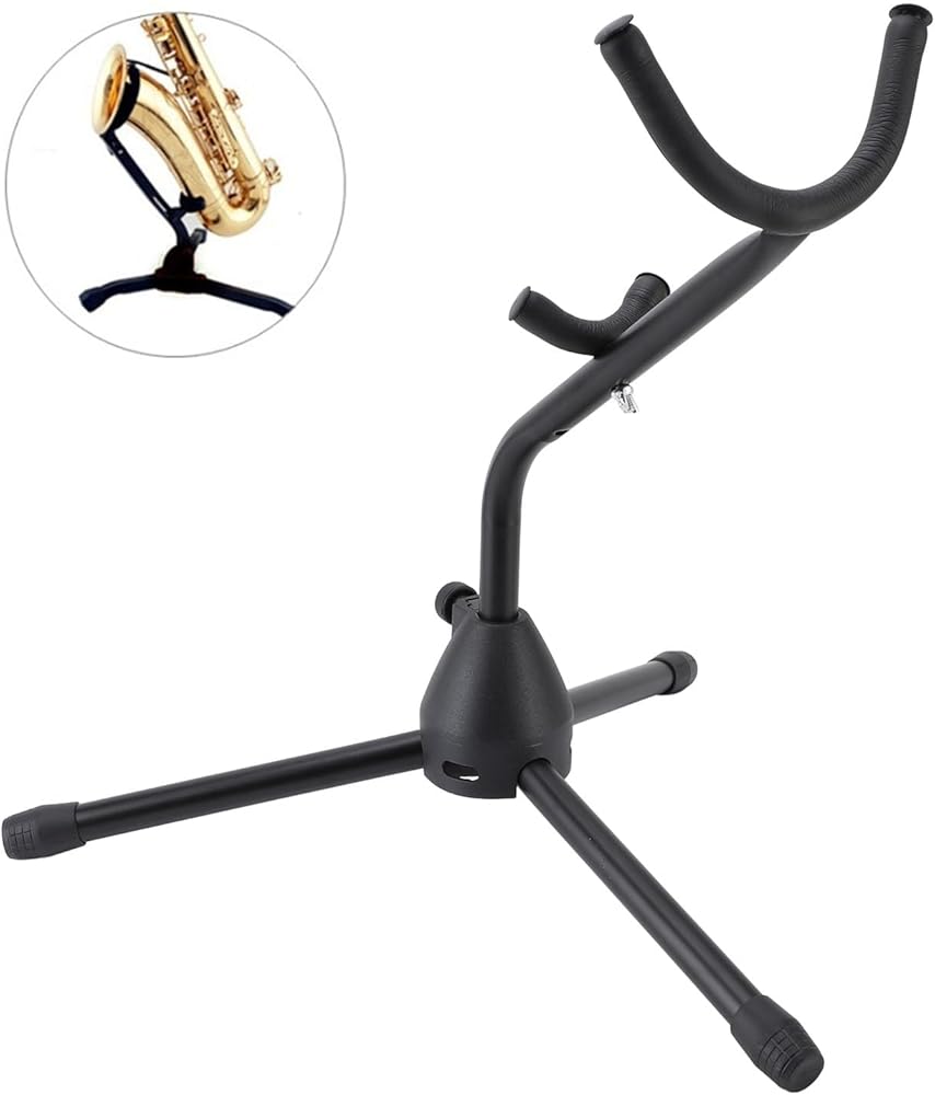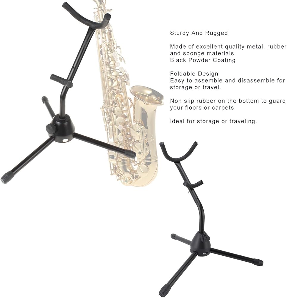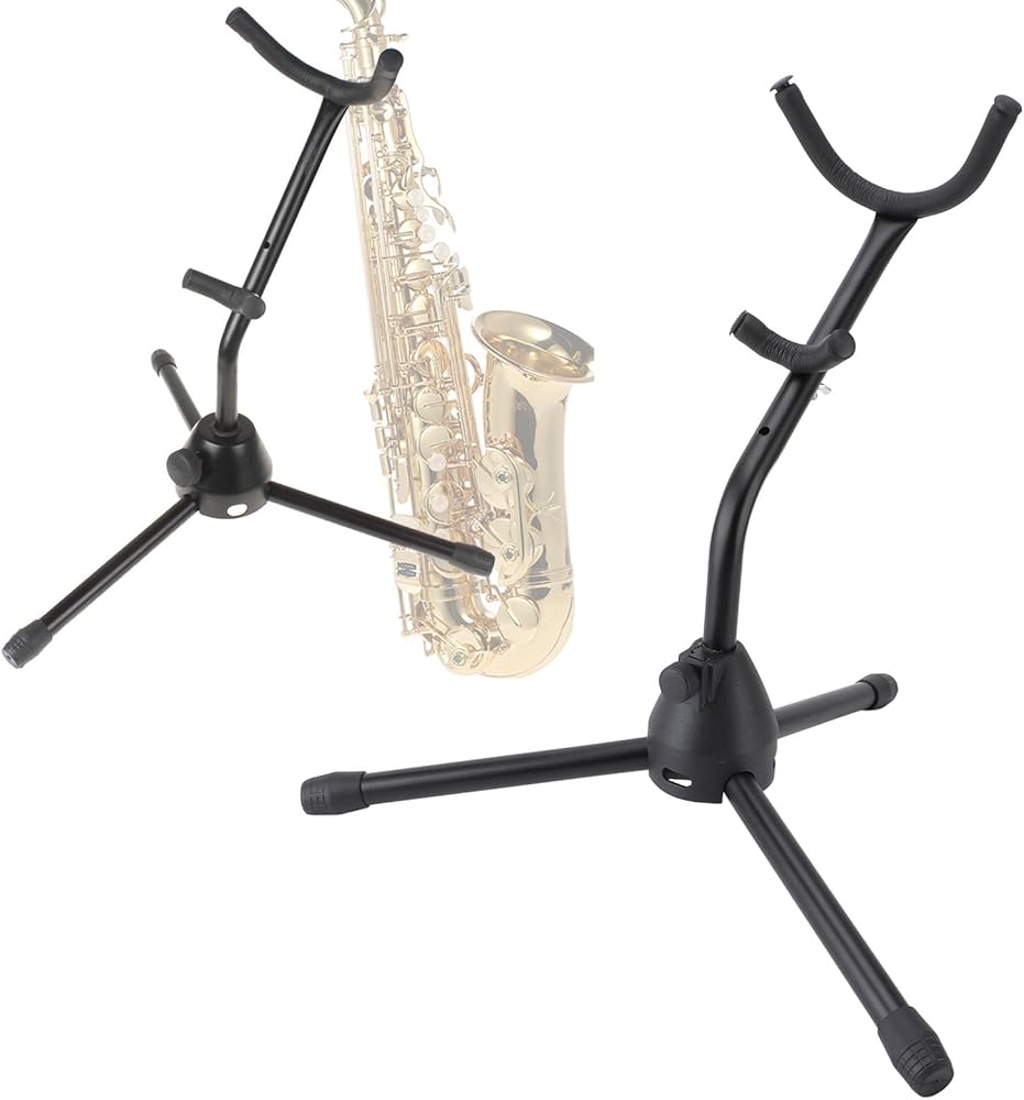 • Foldable Design: This saxophone holder rack features a foldable design, the 3 legs on the tripod can be folded for storage when not in use or being transported, and the bottom has a non slip rubberized bottom to guard your floors or carpets.