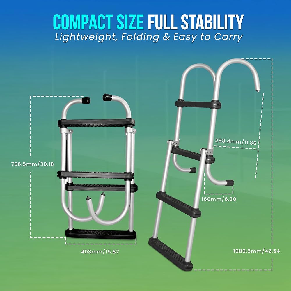 ✔【خفيف الوزن، قابل للطي وقابل للإزالة】: تم تصميمه لتوفير الراحة وخفيف الوزن لكنه متين، ويمكن طي هذا السلم بشكل صغير لسهولة الحمل والتخزين في خزائن القوارب الصغيرة أو الكبائن. يسمح التصميم القابل للإزالة بالإعداد السريع أو الفصل دون تركيب دائم، وهو مثالي للمركبات المائية الموسمية أو المشتركة.