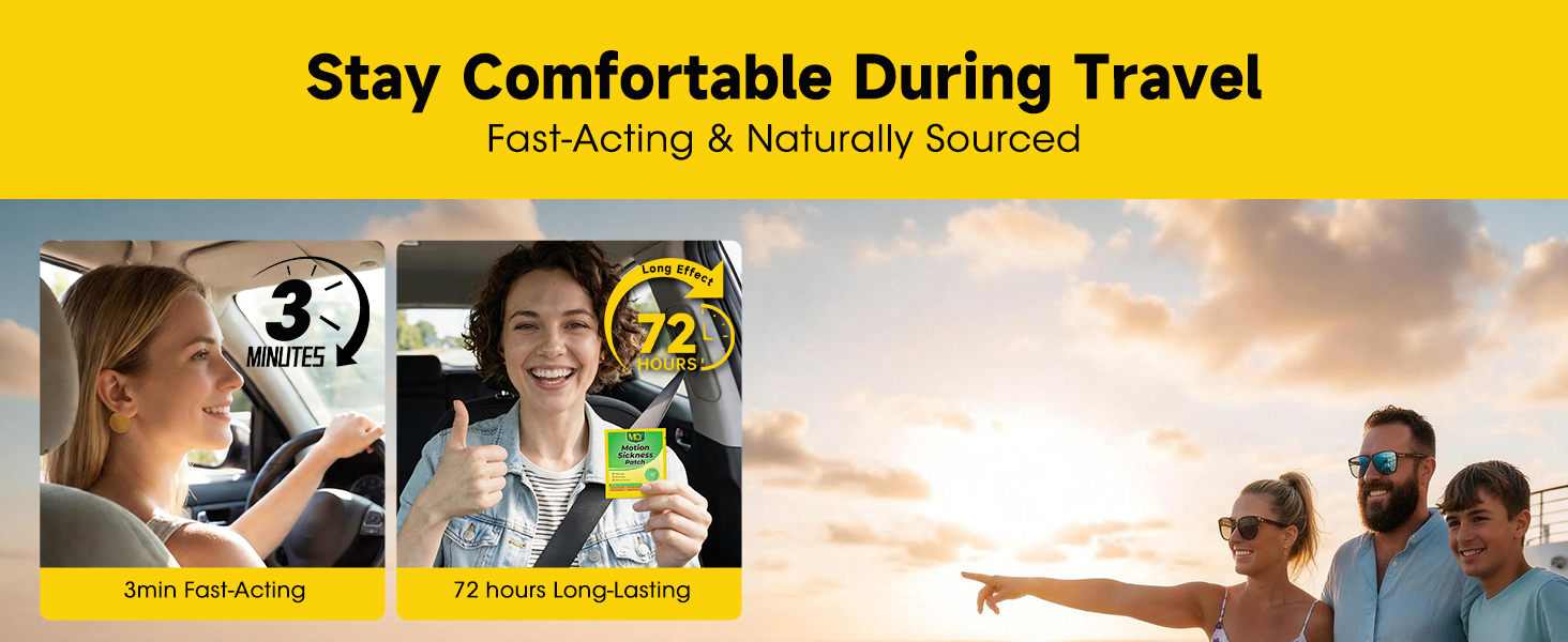 • سريع المفعول وطويل الأمد: يبدأ العمل خلال 10 دقائق، مع تأثيرات تدوم 72 ساعة؛ مثالية لرقع دوار البحر، مما يوفر دعمًا مريحًا للحركة يدوم طويلاً للسفر أو الرحلات البحرية