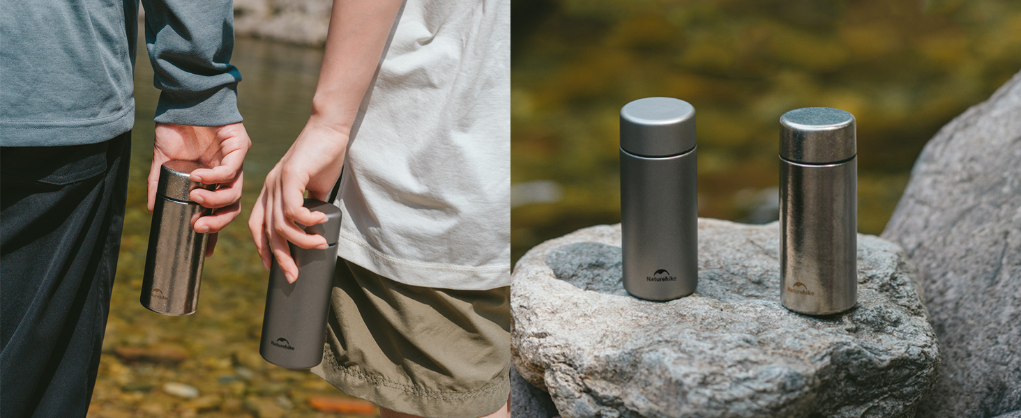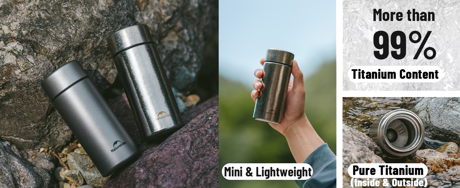 زجاجة مياه من التيتانيوم النقي من Naturehike بسعة 6.8 أونصة/200 مل، كوب صغير خفيف للغاية مع فلتر للقهوة والمشروبات، مانع للتسرب وفم واسع، مثالي للمشي لمسافات طويلة والمكتب (رمادي مايا)