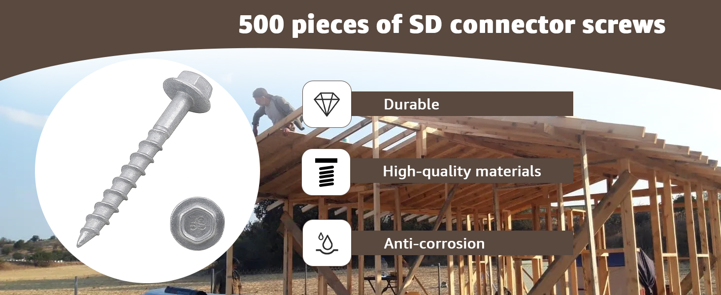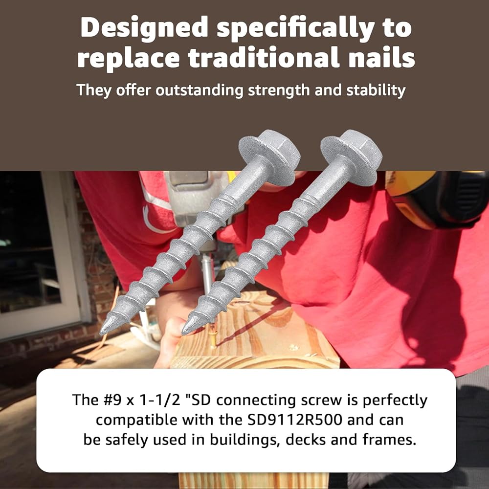 مصممة لتحقيق أقصى قدر من القوة - تم تصميم براغي SD #9 × 1-1/2 بوصة لتحل محل المسامير 10d في تطبيقات الموصل، مما يوفر قبضة وثبات فائقين لشماعات الرافعة والأسطح والإطارات. متوافقة مع موصلات Simpson Strong-Tie (SD9112R500)