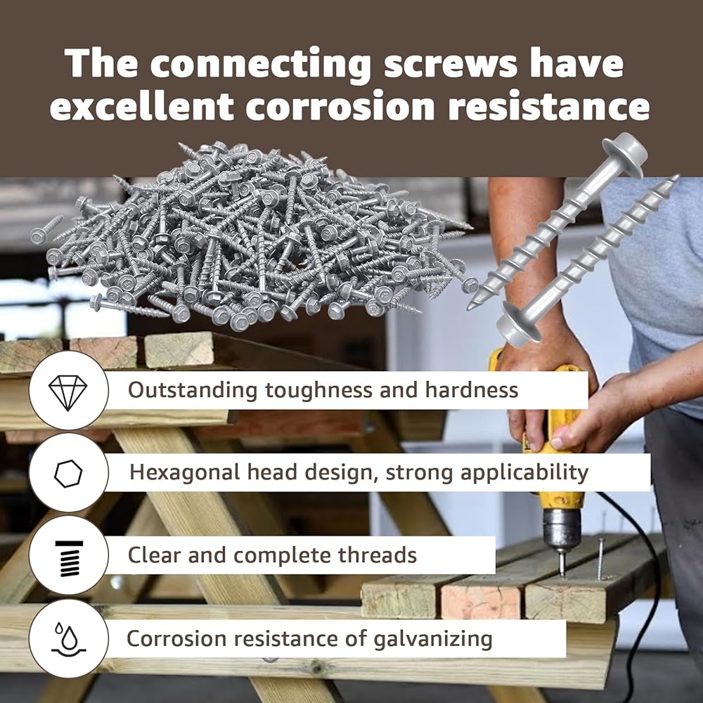 #9 × 1-1/2" براغي موصل SD مع كم التركيب/مسامير شماعات الرافعة شديدة التحمل/ رأس سداسية 1/4 بوصة بقطر 0.370 بوصة، استبدل SD9112R500 و10D مسمار - حماية من الصدأ من 4 طبقات (500-Qty)