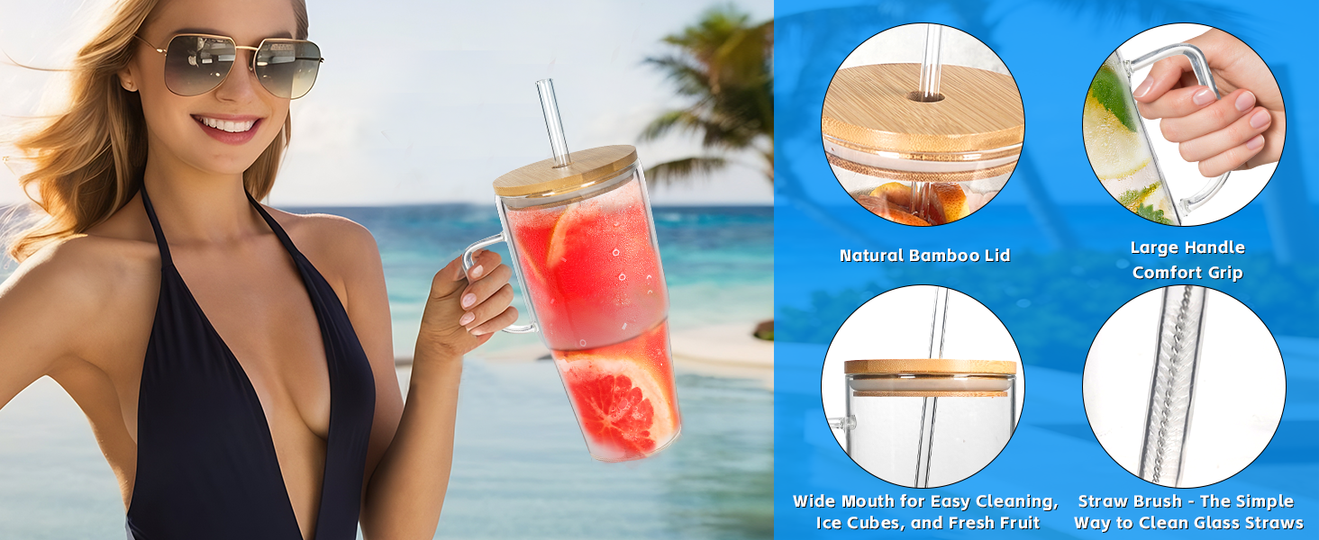 يشتمل على غطاء من الخيزران وغطاء زجاجي: عزز تجربة الشرب الخاصة بك مع غطاء الخيزران الطبيعي الخاص بنا، مما يوفر لمسة أصلية، وقش زجاجي مقاس 10 × 280 مم لاحتساء مشروباتك المفضلة بسهولة.