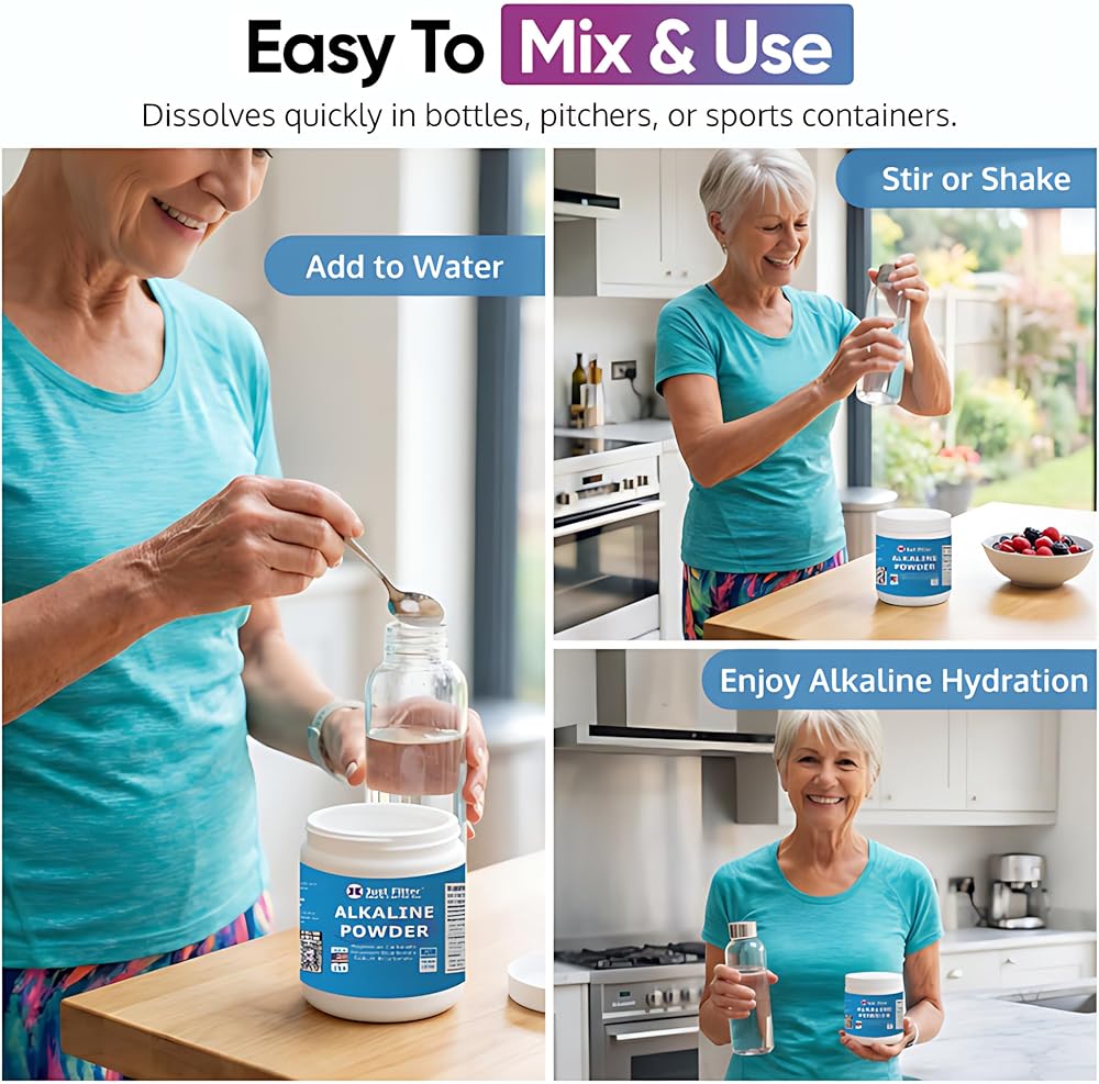 سهل الاستخدام - يذوب بسرعة في الماء للحصول على مشروب قلوي ناعم ومنعش. مثالية للزجاجات أو الأباريق أو الحاويات الرياضية.