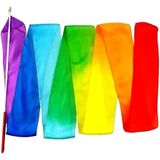 The rainbow silk dance wand is a gymnastics ribbon, princess wand, prop for dance talent show, and worship praise dance streamer.