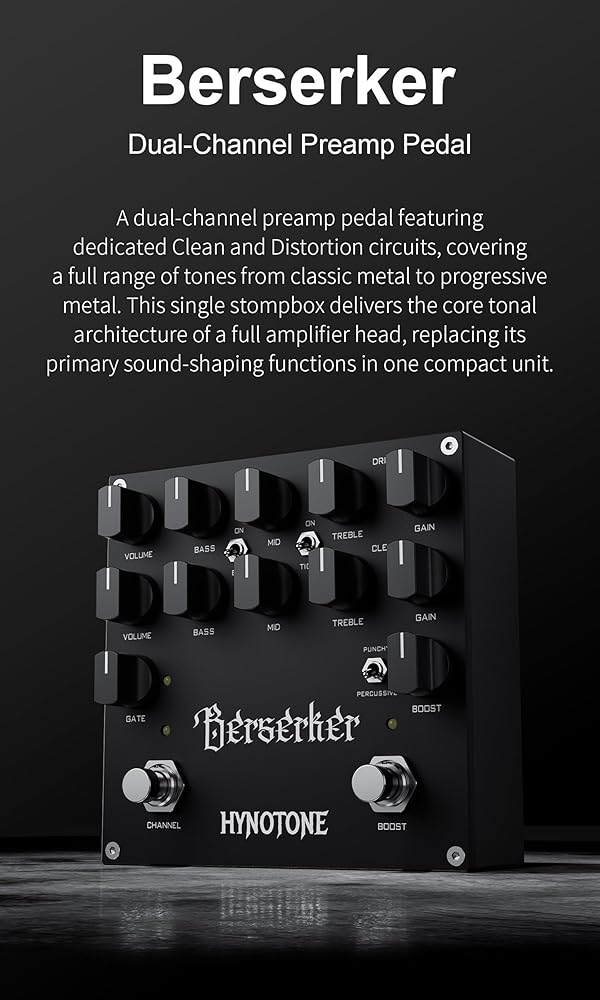 دواسة Preamp للجيتار ثنائية القناة من TOPPING HYNOTONE Berserker - تنظيف وتشويه على شكل أنبوب JFET، بوابة ضوضاء مدمجة، نغمات معدنية قوية ومؤثرة