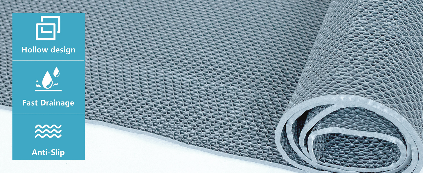 • هيكل تصريف فعال: مصمم بفتحات على شكل حرف S على شكل موجة وتصميم شبكي مجوف، تسمح حصيرة الصرف هذه بمرور الماء بسرعة. مثالي للمناطق الرطبة التي تحتاج إلى إزالة سريعة للمياه، أو التحكم في رذاذ الماء، أو تحسين تغطية الأرضية