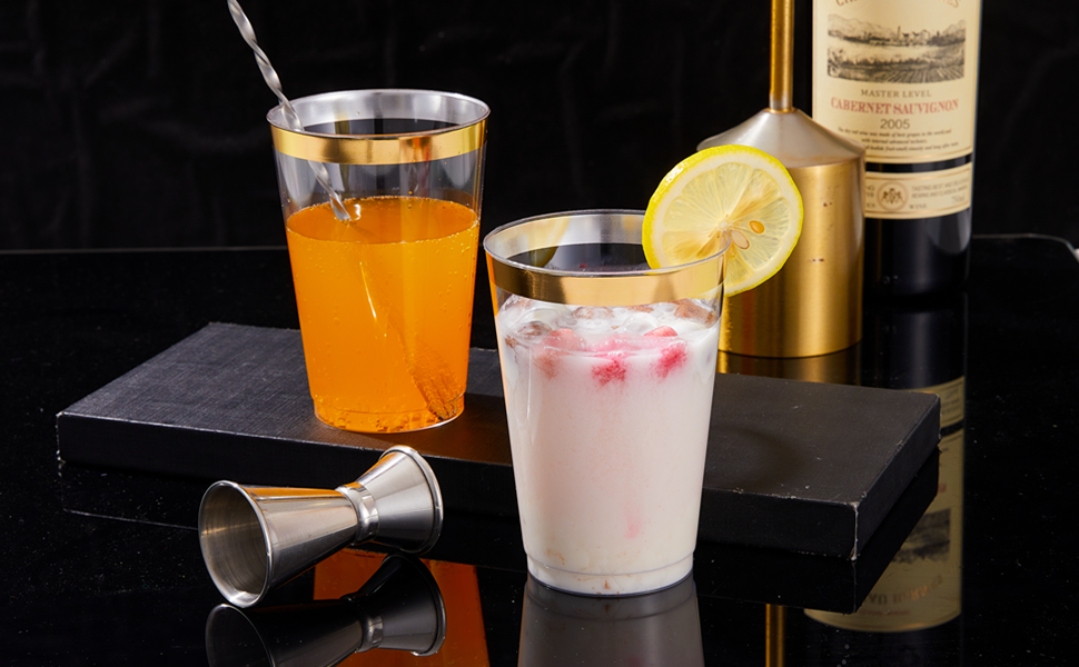 جودة عالية للغاية: الكوب البلاستيكي بالكامل مصنوع من عملية قولبة بالحقن، قالب من قطعة واحدة، الجزء السفلي من الكوب سميك، قوي جدًا. مع فم الكوب الناعم، يتميز الكوب الذهبي الذي نستخدمه للاستعمال مرة واحدة بملمس مريح