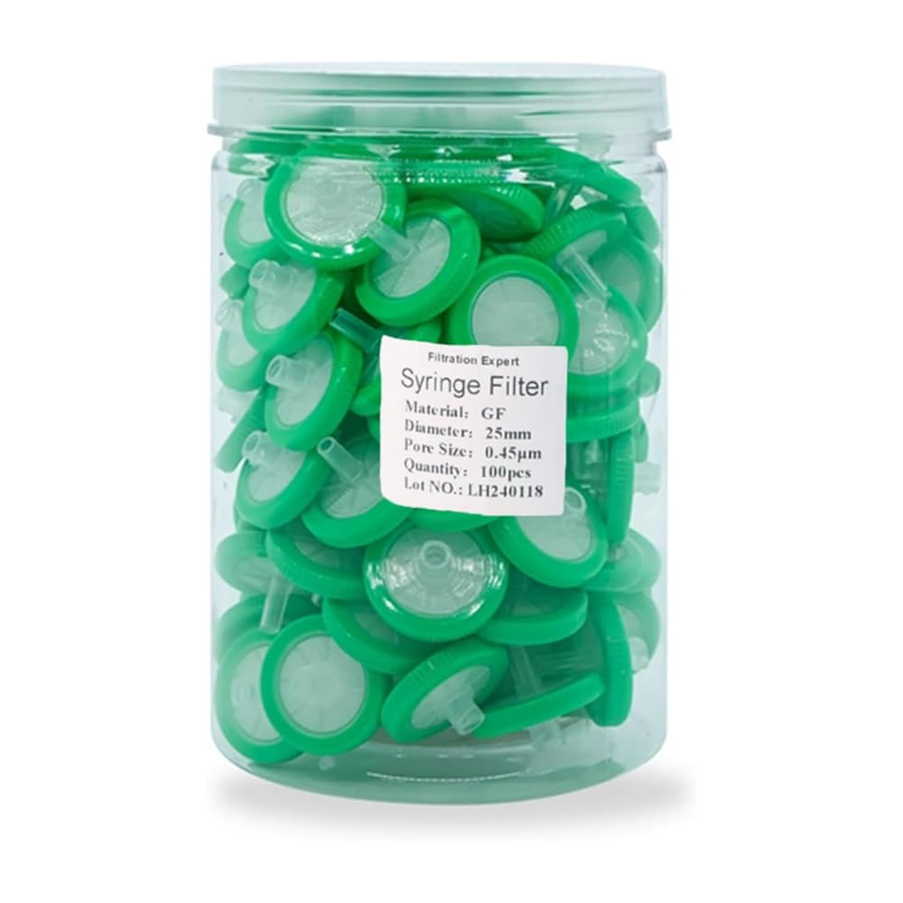 Deschem 100Pcs OD=25MM,0.45um,Glass Fiber Syringe Filter,Made From GF,100 Pieces/Pack
