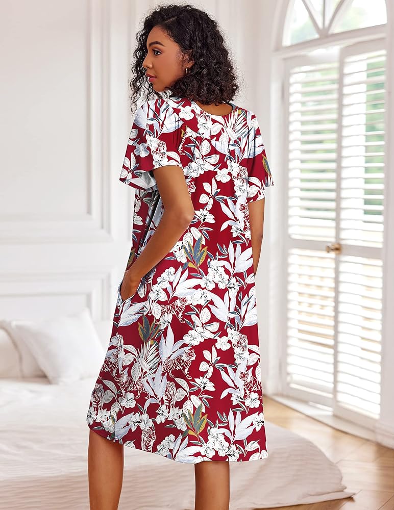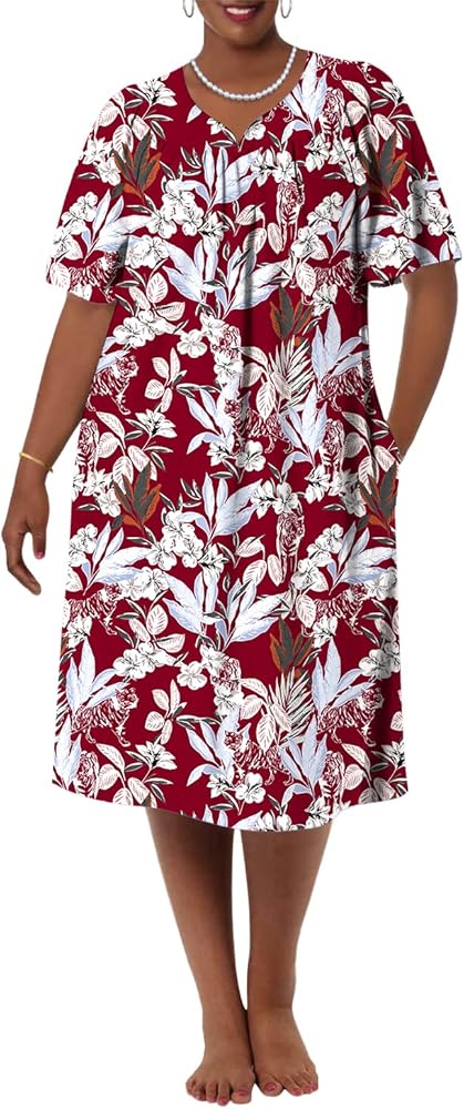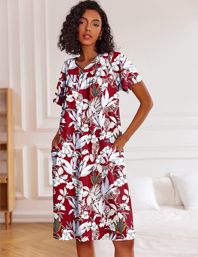 【 جيبان مشقوقان】 فستان منزلي قصير الأكمام للنساء المسنات مع جيوب مشقوقة، مثالي للحفاظ على مفاتيحك والهاتف والمحفظة والمنديل والحفاظ على يديك حرتين. تعتبر جيوب فساتين Mumu الموجودة على الجانب إضافة رائعة وحجم جيد. بمجرد اختيار قميص النوم اللطيف والناعم هذا، سوف تستمتع بالراحة.