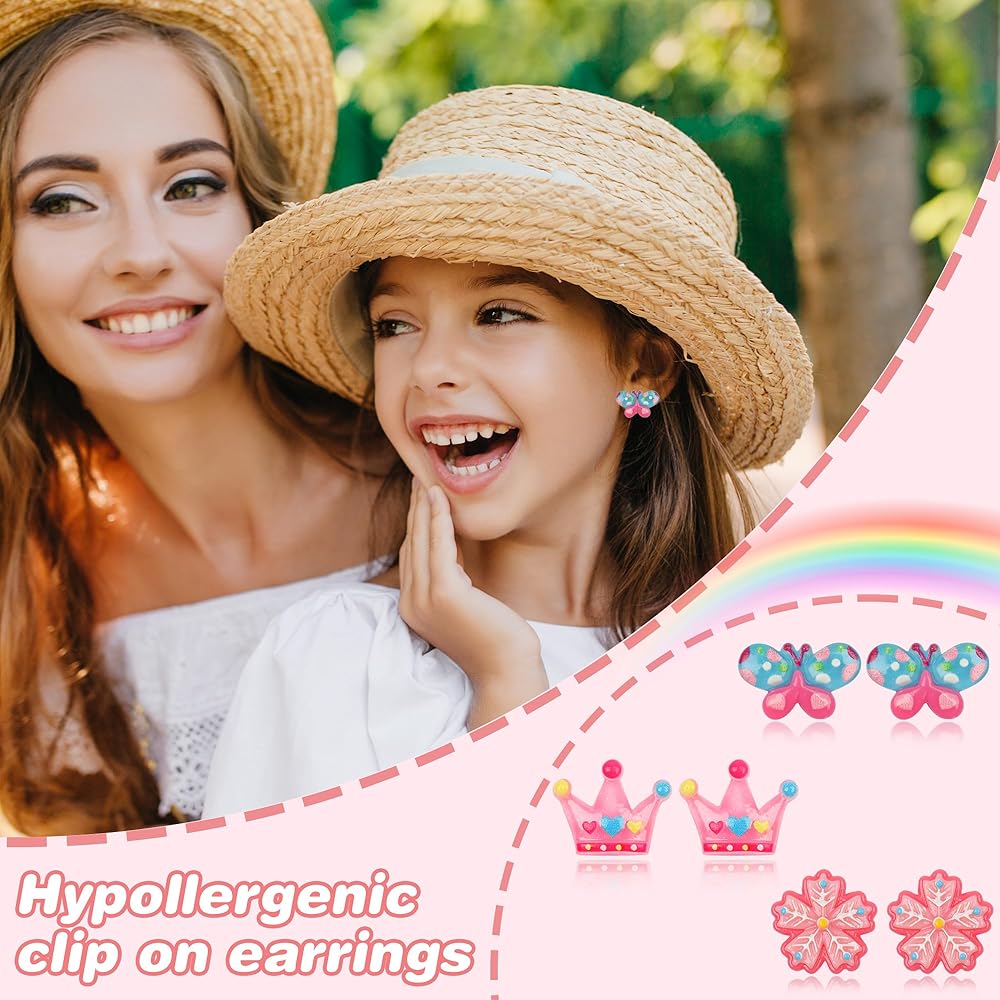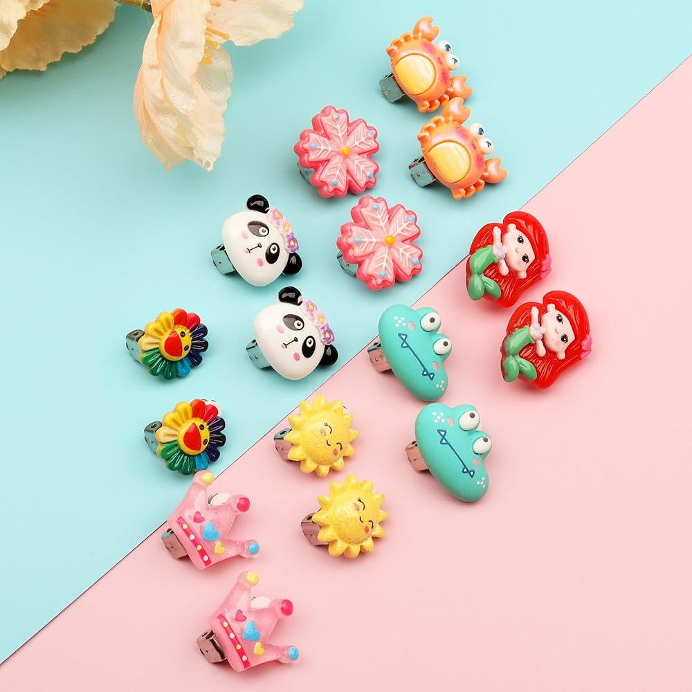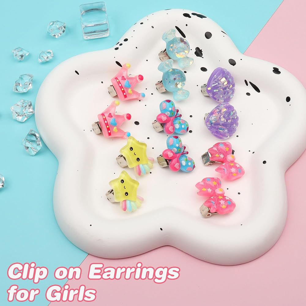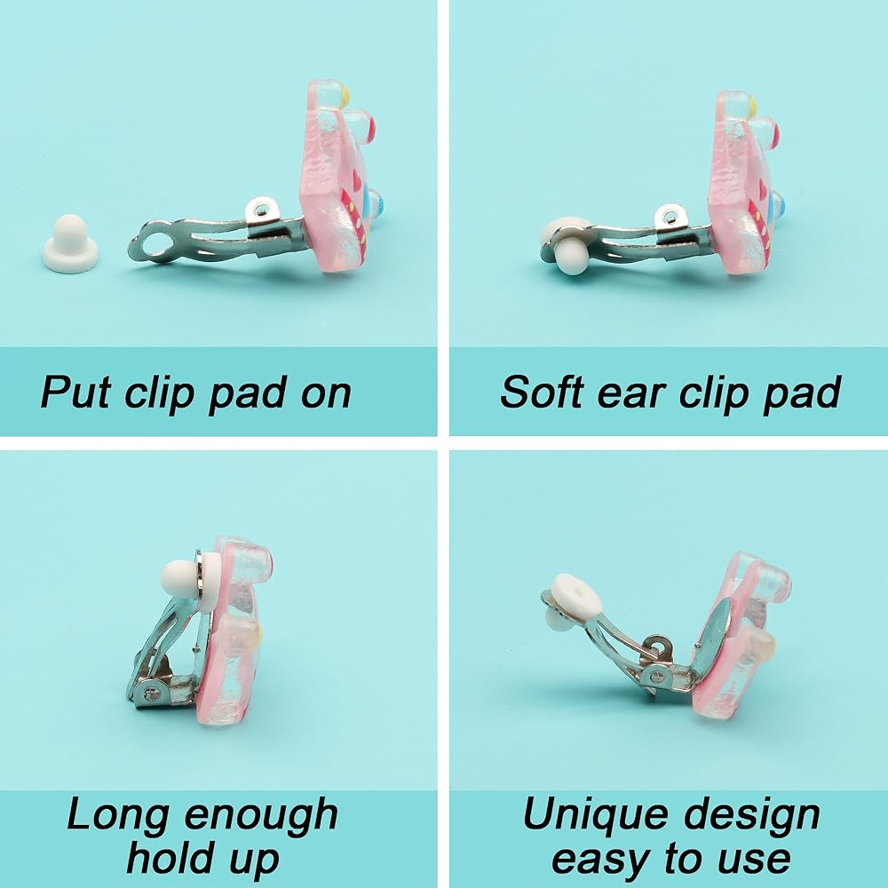 مادة جيدة - هذه الأقراط ذات المشبك للبنات مصنوعة من الراتنج عالي الجودة، أقراط جميلة مضادة للحساسية للفتيات بألوان زاهية وأنماط لطيفة، ستصبح الفتيات من كل الأعمار أكثر روعة عند ارتداء هذه الأقراط ذات المشبك للفتيات!