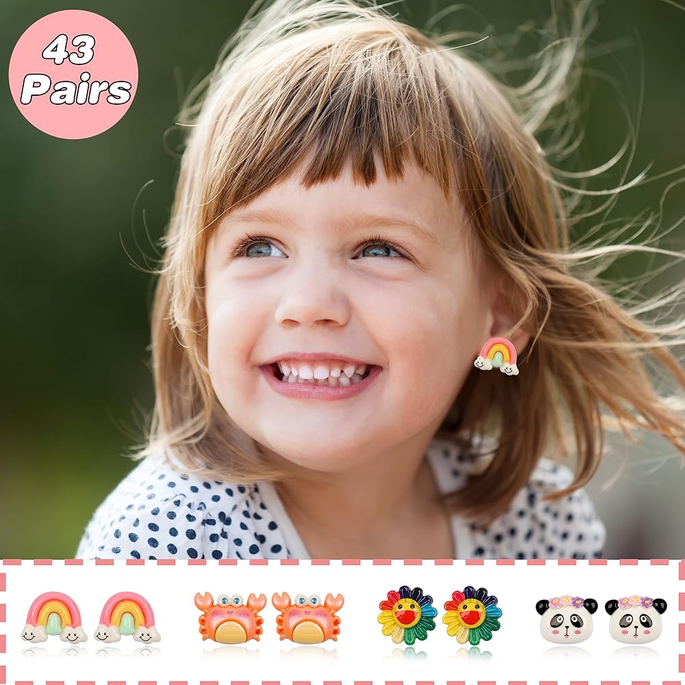 43 زوجًا من الأقراط المزودة بمشبك، شاركها مع الفتيات الأخريات، ارتدي هذه الأقراط اللطيفة ذات المشبك للفتيات.