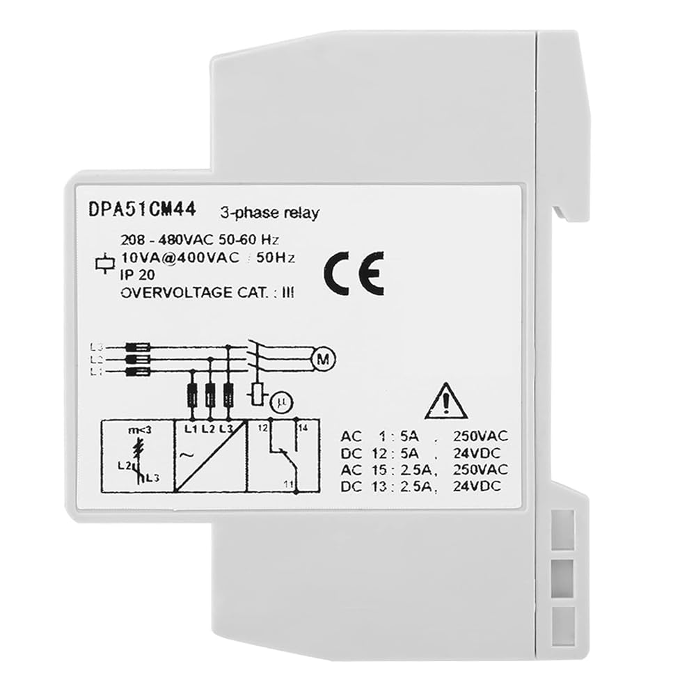 RiToEasysports DPA51CM44 مرحل مراقبة ثلاثي المراحل، تصميم مضغوط، حماية فعالة للمحرك، اكتشاف تسلسل الطور للمصاعد وأنظمة تكييف الهواء