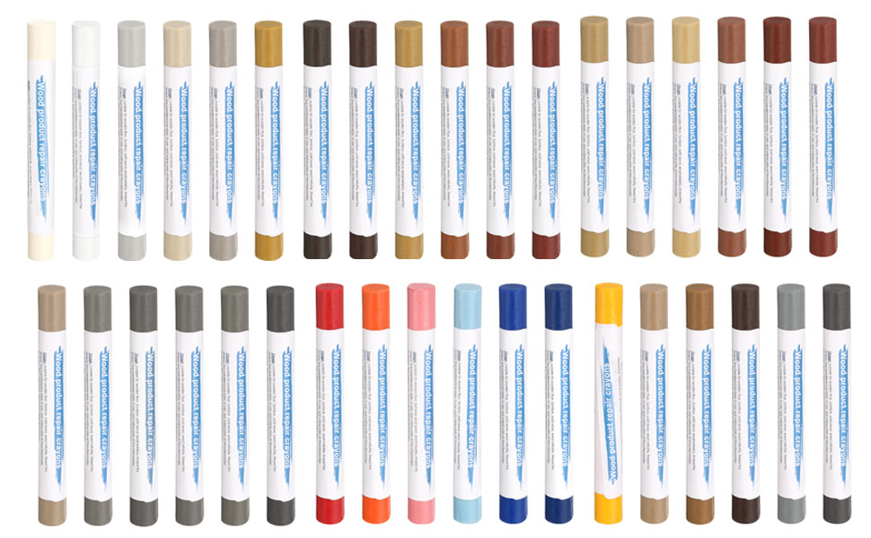 المادة - أقلام إصلاح الأثاث مصنوعة من الشمع الجيد مع الشحوم ومواد التشحيم. الملمس صلب، ليس من السهل كسره، ولا يسقط من المسحوق. يدوم اللون ولا يبهت بعد الاستخدام، فهو أداة جيدة لإصلاح الأثاث.