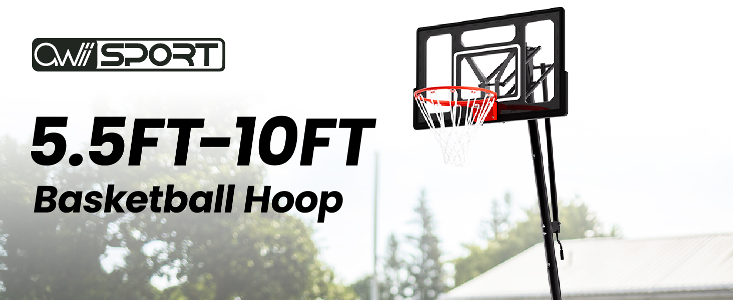 AWII SPORT كرة السلة هوب ارتفاع قابل للتعديل 5.5-10FT، نظام أهداف كرة السلة المحمول مع لوحة خلفية مقاومة للكسر للأطفال الشباب الذين يلعبون في الفناء الخلفي/المحاكم/في الهواء الطلق