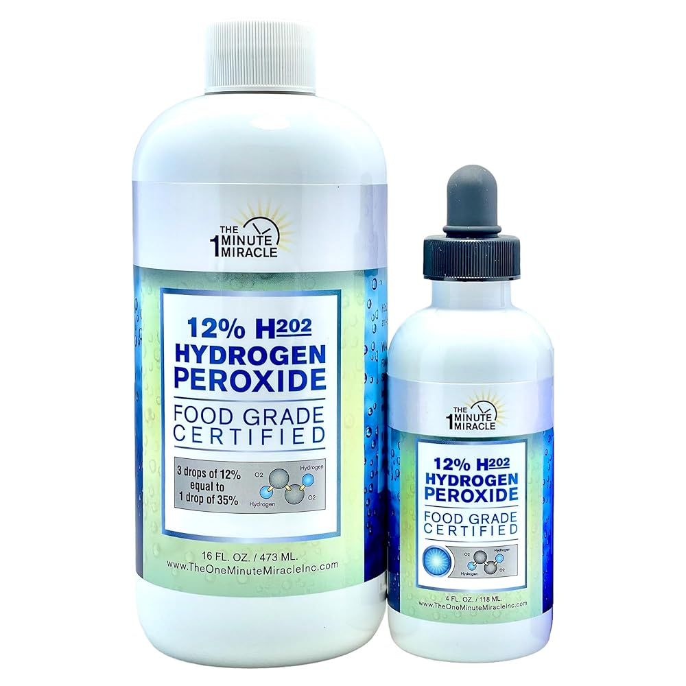 معجزة الدقيقة الواحدة - بيروكسيد الهيدروجين بنسبة 12% من الدرجة الغذائية - زجاجات بحجم 16 أونصة و4 أونصات