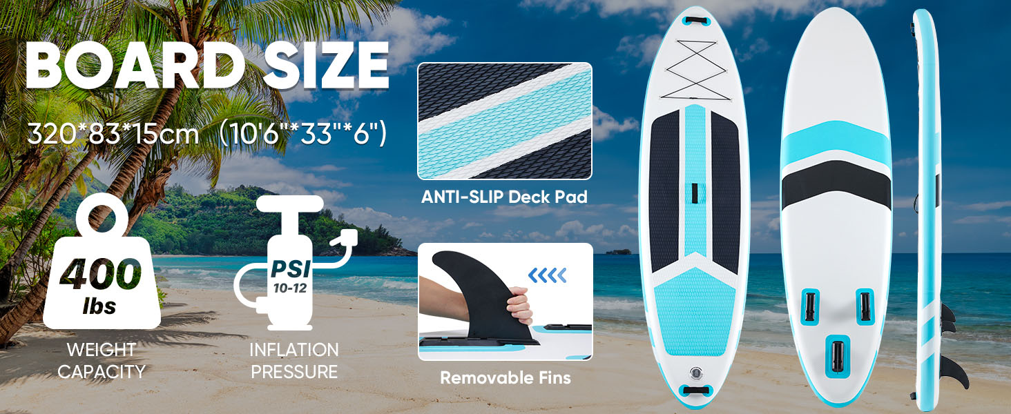 【تصميم خفيف الوزن ومناسب للسفر】عند تفريغه من الهواء، يتم وضع اللوحة بشكل صغير في حقيبة الظهر المتضمنة ويسهل حملها. خفيف الوزن ولكنه قوي، وهو مثالي للرحلات البرية وأيام الشاطئ والتخييم والمغامرات الخارجية.