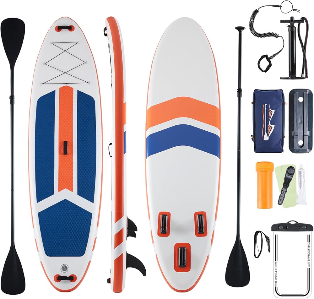 【مجموعة SUP كاملة الكل في واحد】يتم تضمين كل ما تحتاجه: مجداف SUP قابل للتعديل، ومقود أمان، ومضخة عالية الضغط، ومجموعة إصلاح، وحقيبة ظهر. تتيح لك هذه المجموعة الكاملة الوصول إلى الماء على الفور دون شراء ملحقات إضافية.