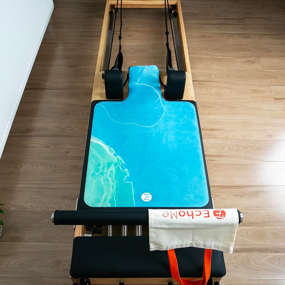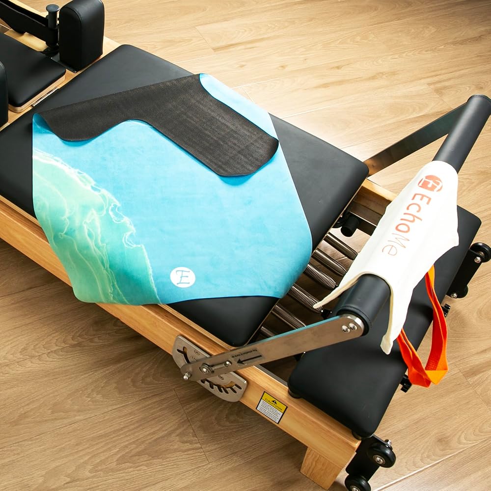 سجادة إيكو مي بيلاتيس ريفورمر - قبضة غير قابلة للانزلاق - غطاء سميك للغاية ماص للعرق، محمول مع حقيبة لصالة الألعاب الرياضية، يناسب الجسم المتوازن، ميريثيو (المد الهامس)