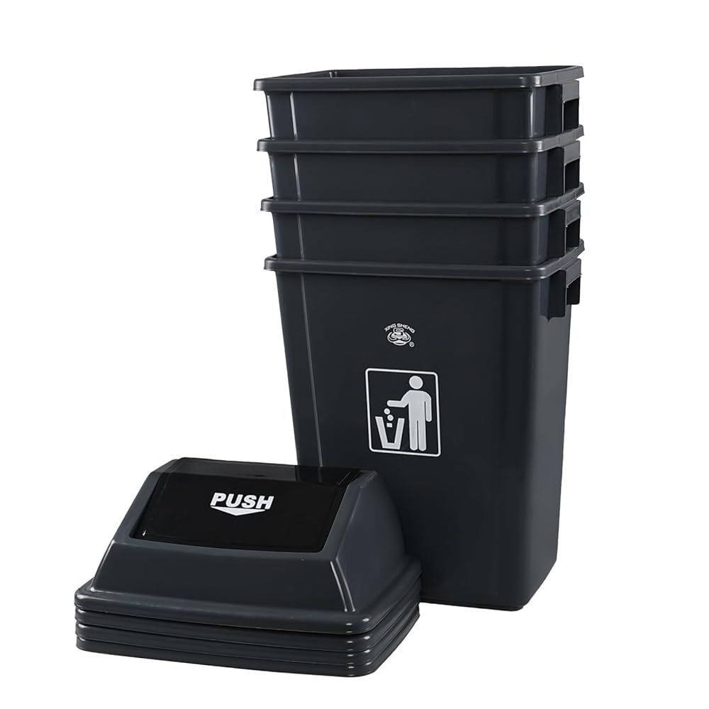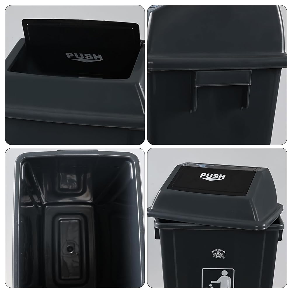 These plastic swing lid trash can with 18 gallon capacity, perfect for a large family indoor or outdoor use, also enough for commercial use, ample storage capacable can reduce the number of times to clean up rubbish