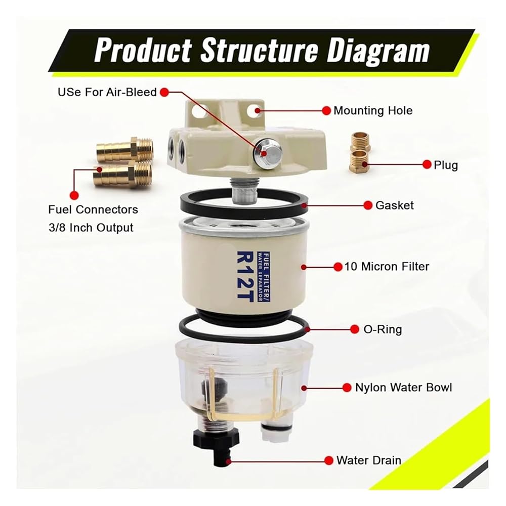 Specifications: a. Fuel water separator filter also fits 3/8 inch NPT outboard motors.